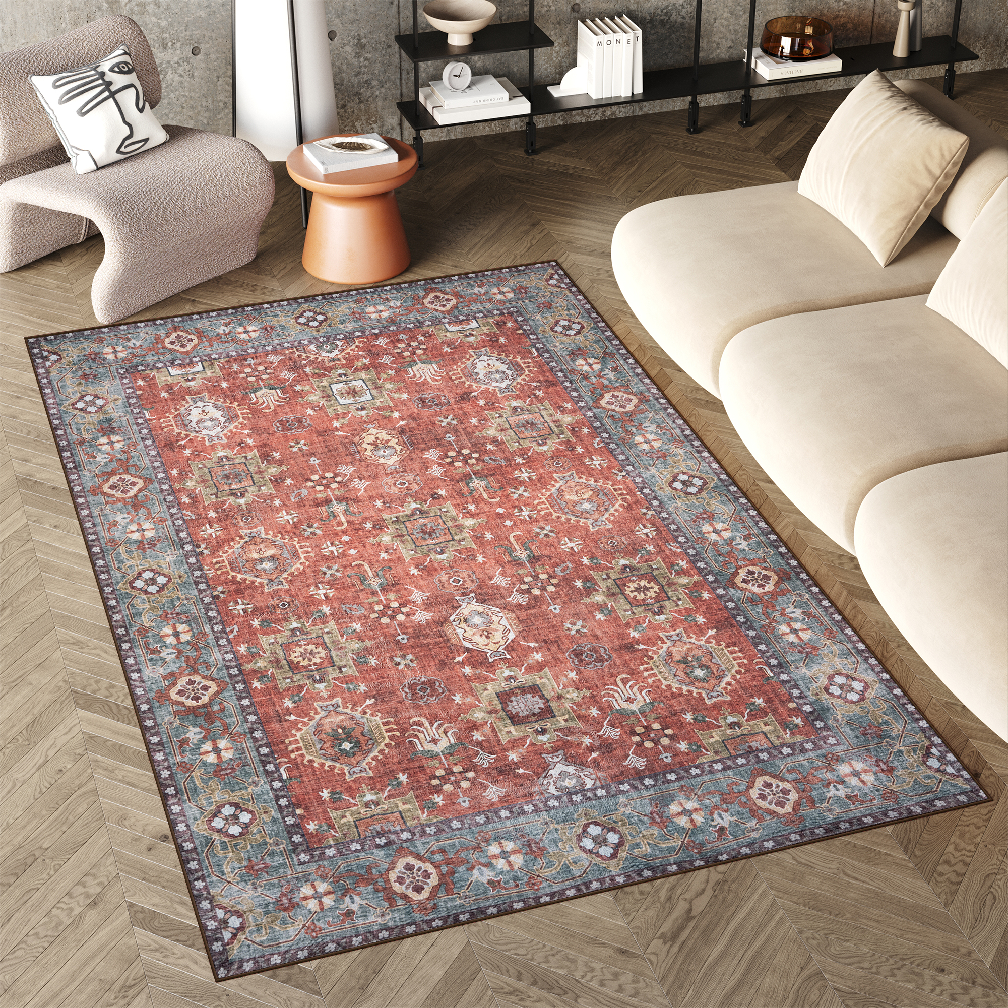 Dywan FlannelCzerwony Niebieski Ornamenty Vintage