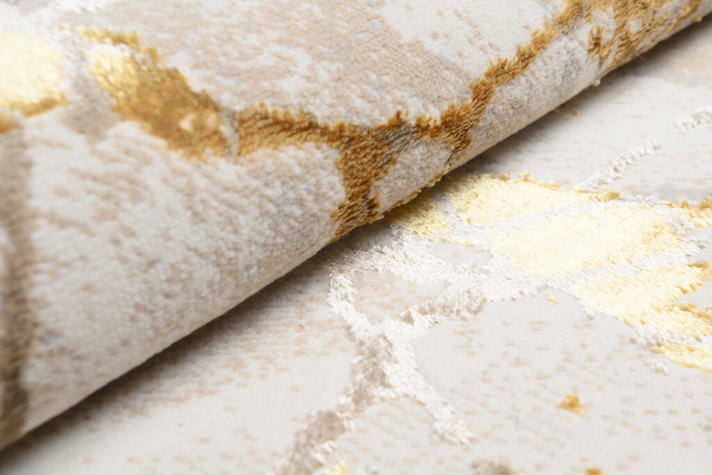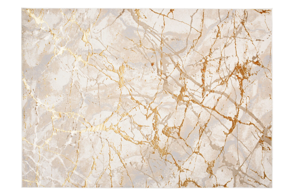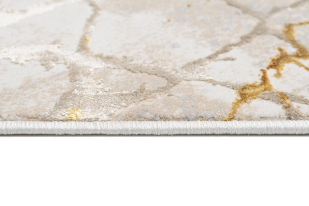 Dywany Golden – linia wysokiej jakości dywanów z wzorami abstrakcyjnymi i vintage w zachwycającej palecie kolorów kremu i złota. Oprócz olśniewających walorów estetycznych, dywany Golden są również łatwe w utrzymaniu i pielęgnacji. Można je odkurzać lub czyścić punktowo w zależności od potrzeb, co gwarantuje, że pozostaną w nieskazitelnym stanie przez wiele lat. Ponadto, dywany opatrzone są certyfikatem OEKOTEX – nie zawierają szkodliwych zdrowiu substancji.
