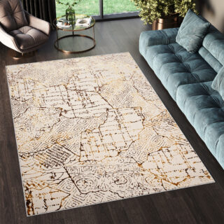 Dywany Golden – linia wysokiej jakości dywanów z wzorami abstrakcyjnymi i vintage w zachwycającej palecie kolorów kremu i złota. Oprócz olśniewających walorów estetycznych, dywany Golden są również łatwe w utrzymaniu i pielęgnacji. Można je odkurzać lub czyścić punktowo w zależności od potrzeb, co gwarantuje, że pozostaną w nieskazitelnym stanie przez wiele lat. Ponadto, dywany opatrzone są certyfikatem OEKOTEX – nie zawierają szkodliwych zdrowiu substancji.