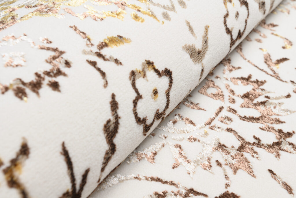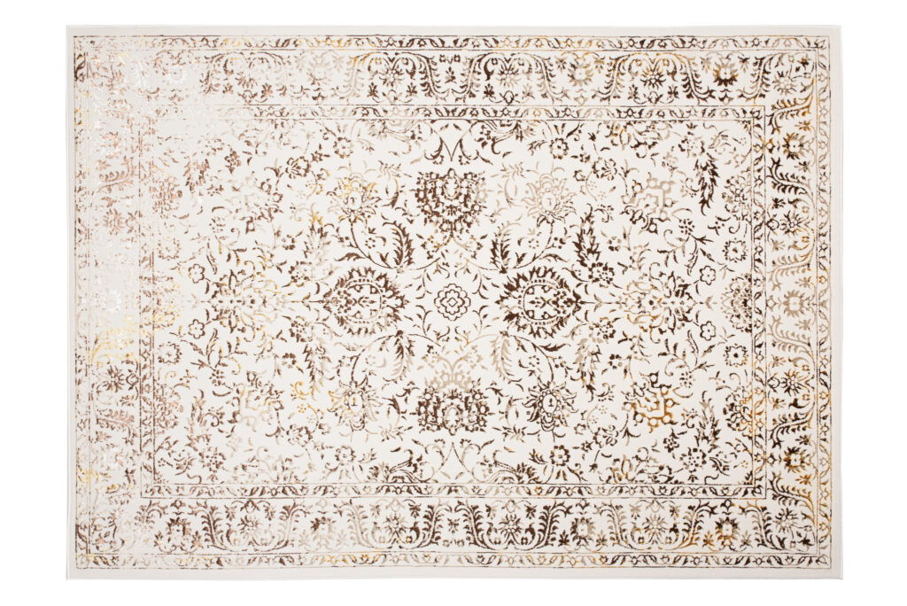 Dywany Golden – linia wysokiej jakości dywanów z wzorami abstrakcyjnymi i vintage w zachwycającej palecie kolorów kremu i złota. Oprócz olśniewających walorów estetycznych, dywany Golden są również łatwe w utrzymaniu i pielęgnacji. Można je odkurzać lub czyścić punktowo w zależności od potrzeb, co gwarantuje, że pozostaną w nieskazitelnym stanie przez wiele lat. Ponadto, dywany opatrzone są certyfikatem OEKOTEX – nie zawierają szkodliwych zdrowiu substancji.