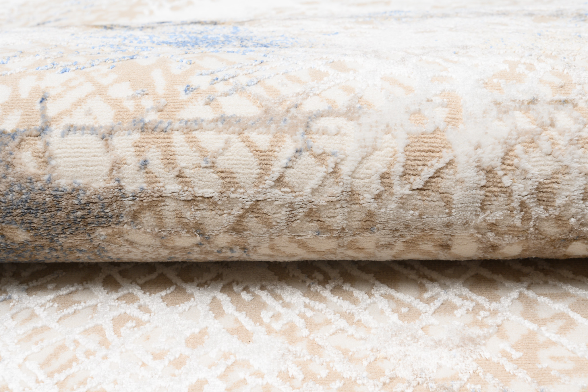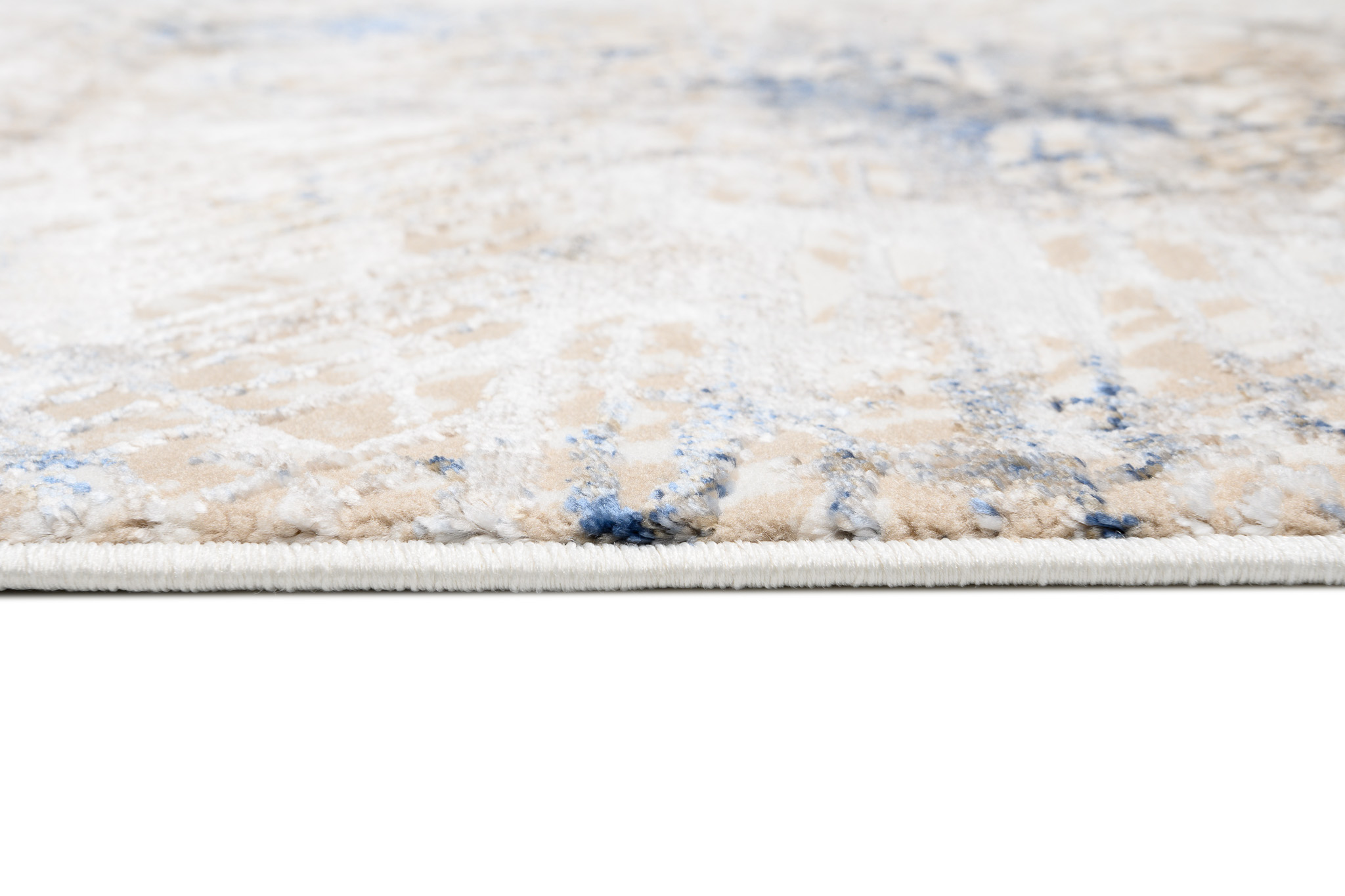 Dywan HeraKremowy Beżowy Niebieski Przetarcia Efekt 3D