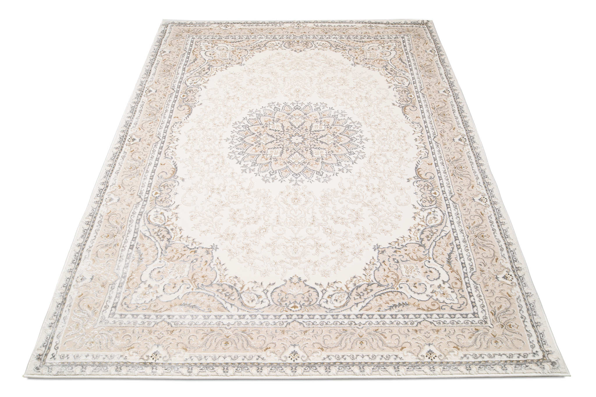 Dywan HeraKremowy Beżowy Szary Vintage Medalion Efekt 3D