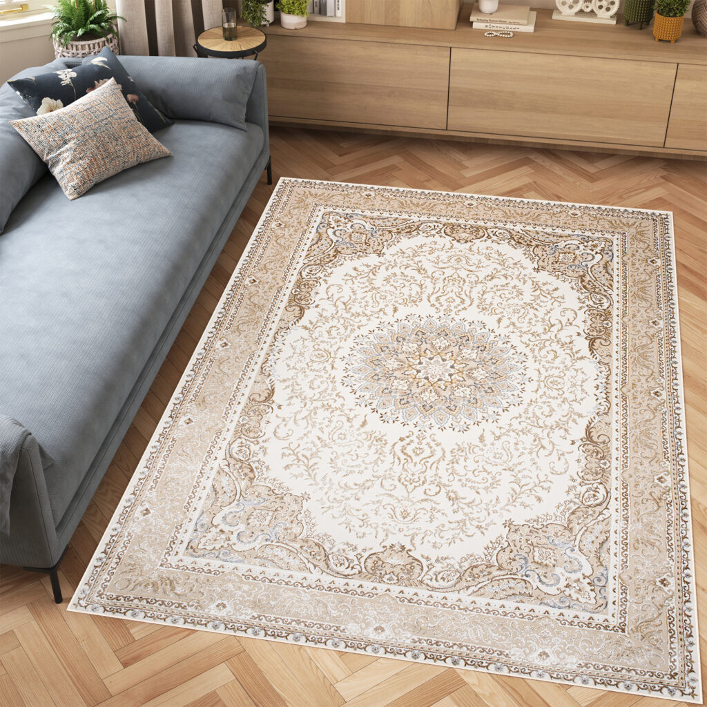 Dywan HeraKremowy Beżowy Tradycyjny Rozeta Efekt 3D