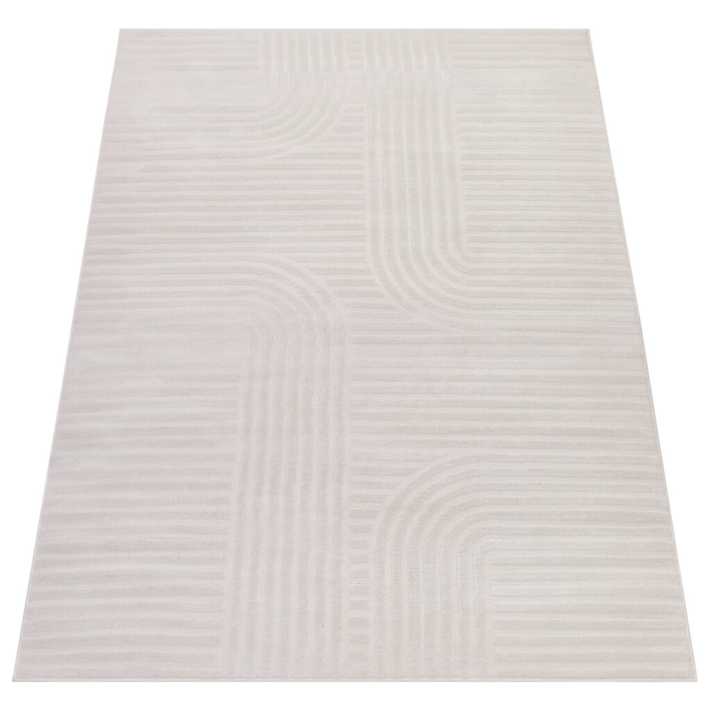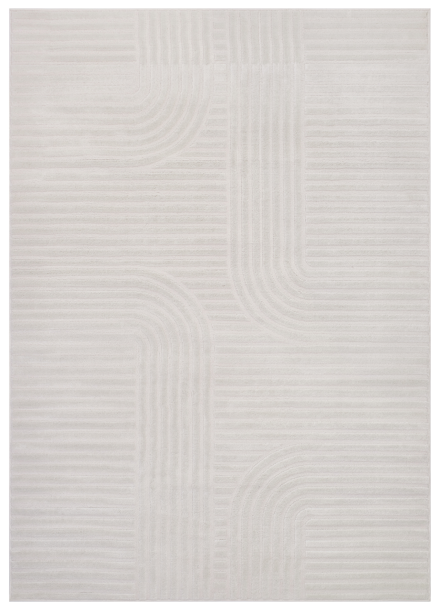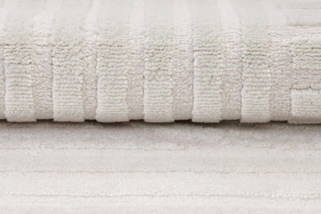 Ten dywan w kolorze złamanej bieli, ozdobiony nowoczesnym wzorem pasków, idealnie wpisuje się w klimat stylu hygge. Jego subtelne, liniowe wzory dodają wnętrzu lekkości, jednocześnie zachowując minimalistyczny charakter. Kolor złamanej bieli sprawia, że dywan ten będzie doskonałym wyborem do wnętrz skandynawskich, w których jasne barwy i proste formy są podstawą.