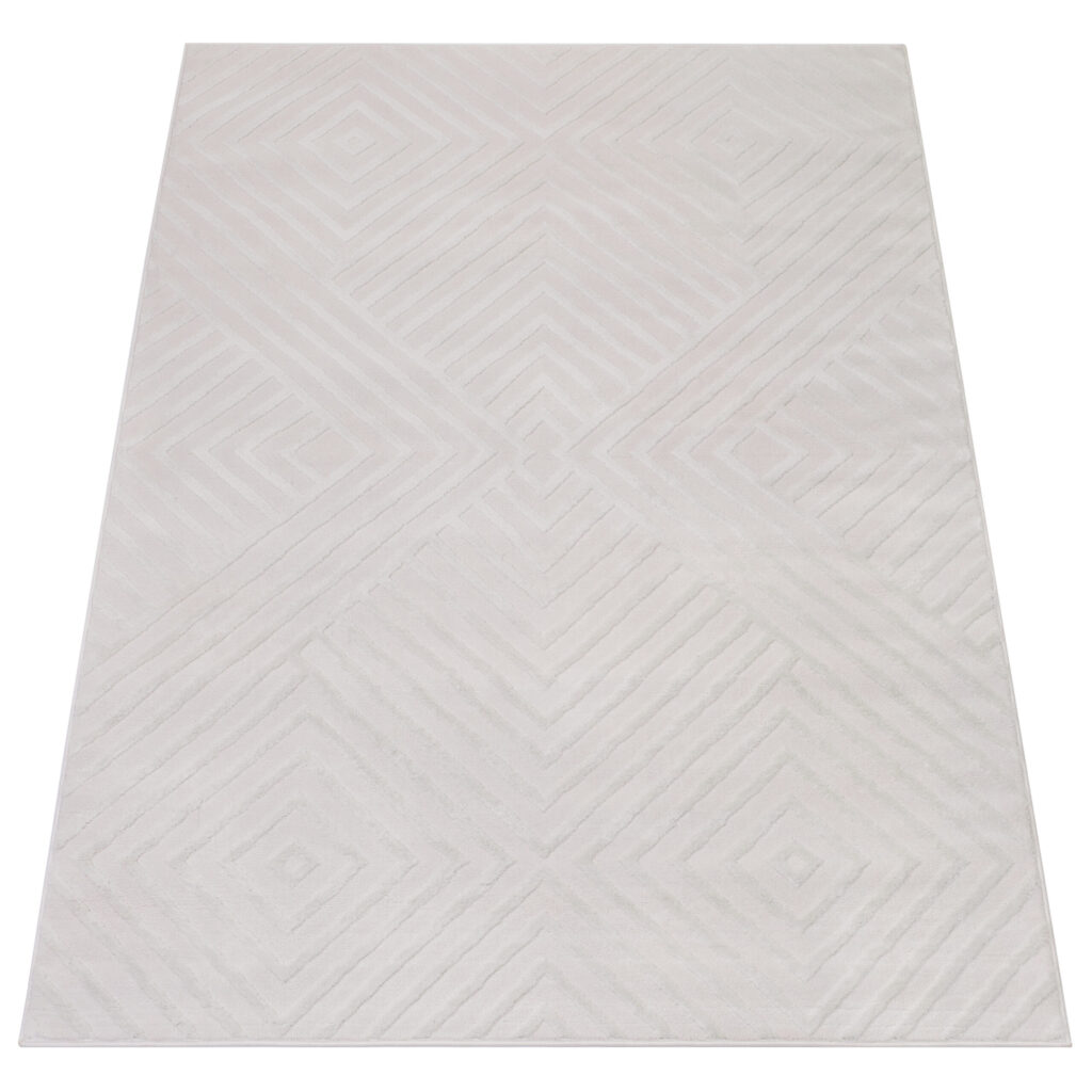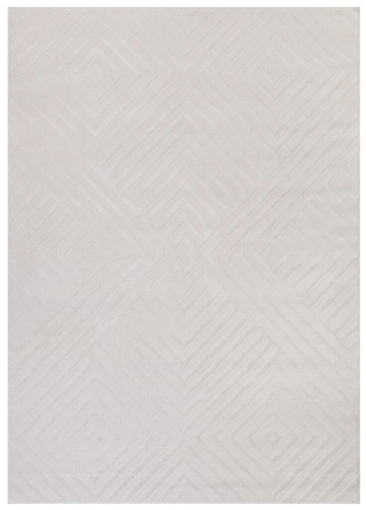 Ten dywan w kolorze złamanej bieli z eleganckim wzorem rombów doskonale wpisuje się w styl hygge, stawiający na komfort i przytulność. Delikatna, złamana biel tworzy subtelne tło, a geometryczny wzór rombów dodaje wnętrzu wyrazu i harmonii. Dzięki spokojnej kolorystyce ten dywan nadaje przestrzeni lekkości, idealnie pasując do pomieszczeń, w których szuka się ciepła i relaksu.