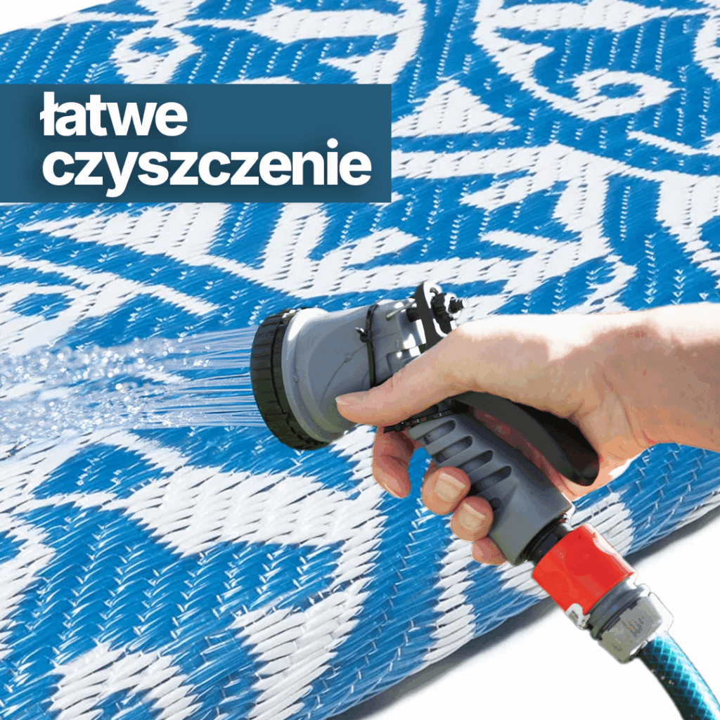 Dywan outdoroowy w niebiesko-białe koła to doskonały wybór dla osób poszukujących stylowego i funkcjonalnego akcesorium do relaksu na plaży, tarasie czy podczas campingowych przygód. Ten dwustronny dywan o wzorze z kołami łączy w sobie świeżość niebieskiego koloru z subtelnym urokiem białego, tworząc wyjątkową całość. Wykonany z wysokiej jakości materiałów, dywan outdoroowy jest nie tylko estetyczny, ale również wodoodporny. Dzięki temu możesz cieszyć się spokojem, nawet gdy korzystasz z niego na wilgotnej plaży czy tarasie. Nie musisz się martwić o przemoczenie czy plamy, ponieważ ten dywan jest łatwy do czyszczenia i utrzymania w doskonałym stanie.