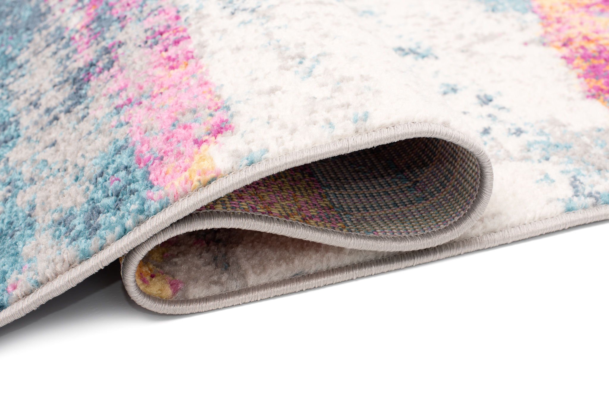 Najlepiej komponuje się z jasnymi podłogami, które podkreślają jego pastelowy urok, choć równie dobrze prezentuje się na ciemniejszych powierzchniach, wprowadzając ciepły, przyjemny akcent. Wysokiej jakości materiały zapewniają trwałość i odporność na użytkowanie. Obok takiego dywanu z tak oryginalnym wzorem trudno przejść obojętnie.