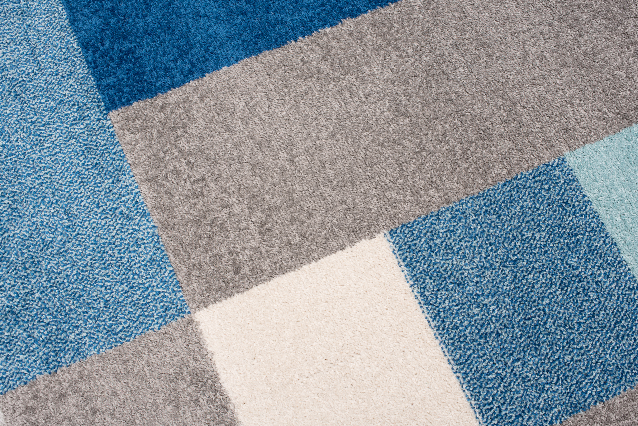 Ten dywan z geometrycznymi kwadratami świetnie sprawdzi się we wnętrzach w stylu nowoczesnym i skandynawskim, gdzie przełamuje monotonię i dodaje przestrzeni niepowtarzalnego charakteru. Geometryczny wzór w chłodnych kolorach wprowadza do pomieszczenia ciekawy akcent wizualny, idealny do salonu lub sypialni. Kolekcja Lazur wyróżnia się estetycznym wykończeniem oraz trwałością, co sprawia, że dywan będzie cieszył oko przez długi czas.