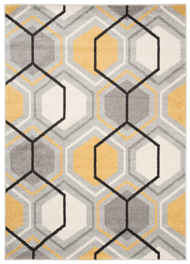 Dywan LazurSzary Żółty Kremowy Geometryczny Sześcian