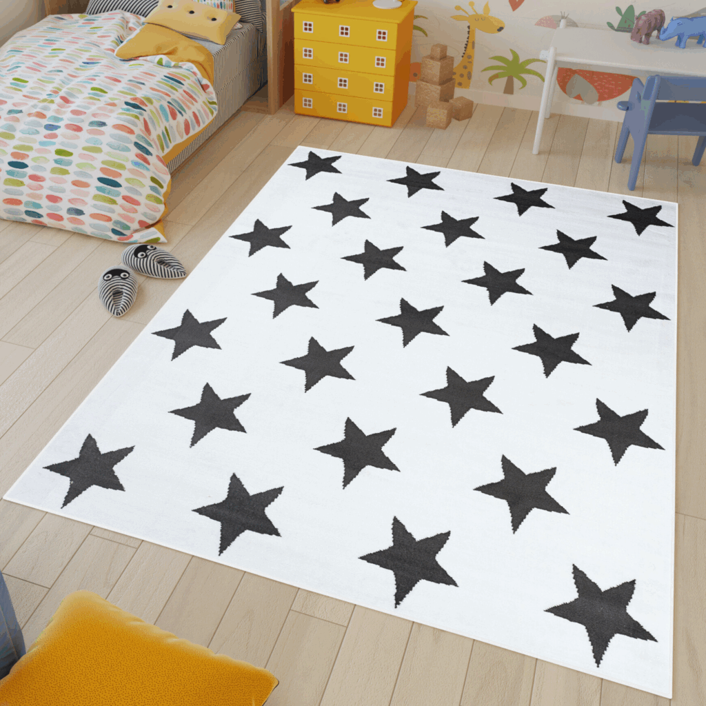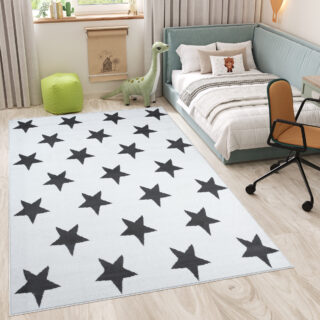 Dywan LuxuryBiały Szary Gwiazdy Dziecięcy