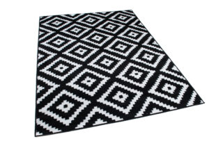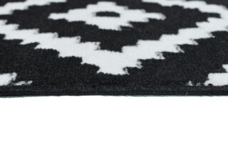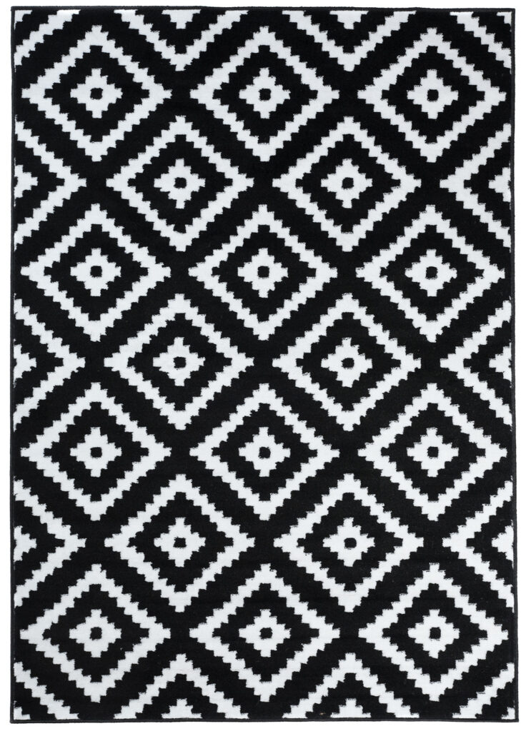 Ten dywan w klasycznej czarno-białej kolorystyce zachwyca eleganckim, geometrycznym wzorem diamentów, który wprowadza do wnętrza wyrazisty i stylowy akcent. Kontrast między głęboką czernią a czystą bielą tworzy nowoczesny, a zarazem ponadczasowy efekt, który doskonale uzupełni wnętrza urządzone w stylu minimalistycznym, glamour czy art déco. Ten czarno-biały dywan z geometrycznym wzorem diamentów sprawia, że przestrzeń staje się bardziej wyrafinowana, a jednocześnie pozostaje w harmonii z innymi elementami wyposażenia.