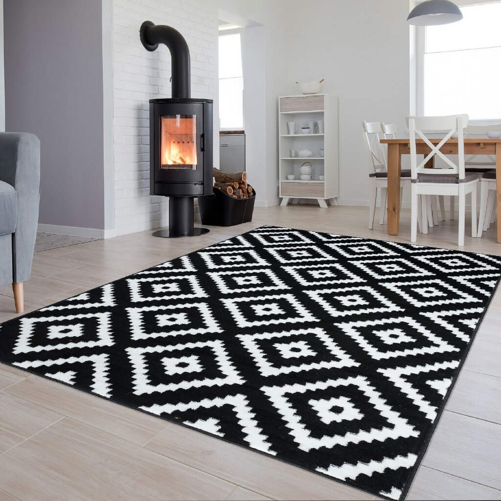Dywan LuxuryCzarny Biały Geometryczny Diament
