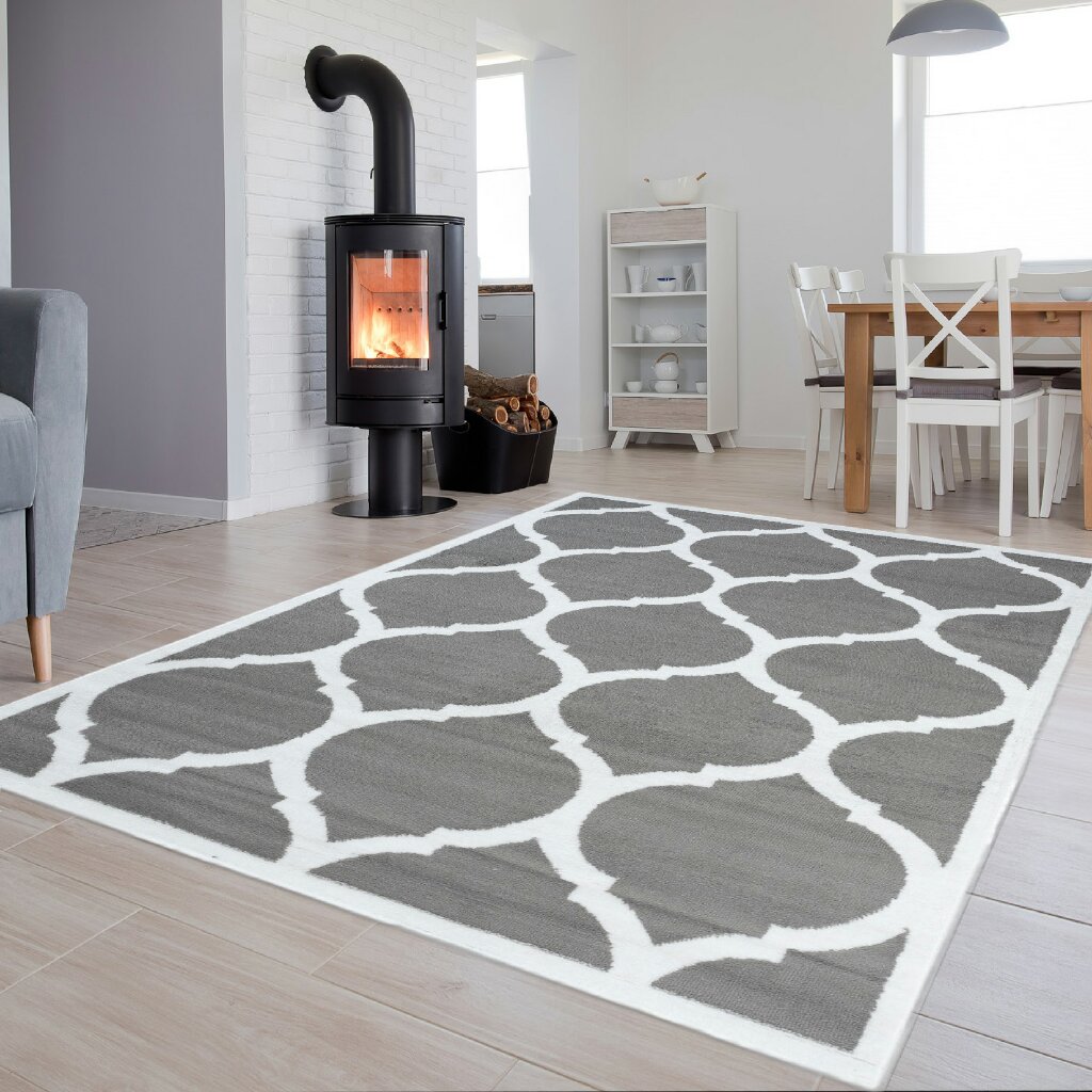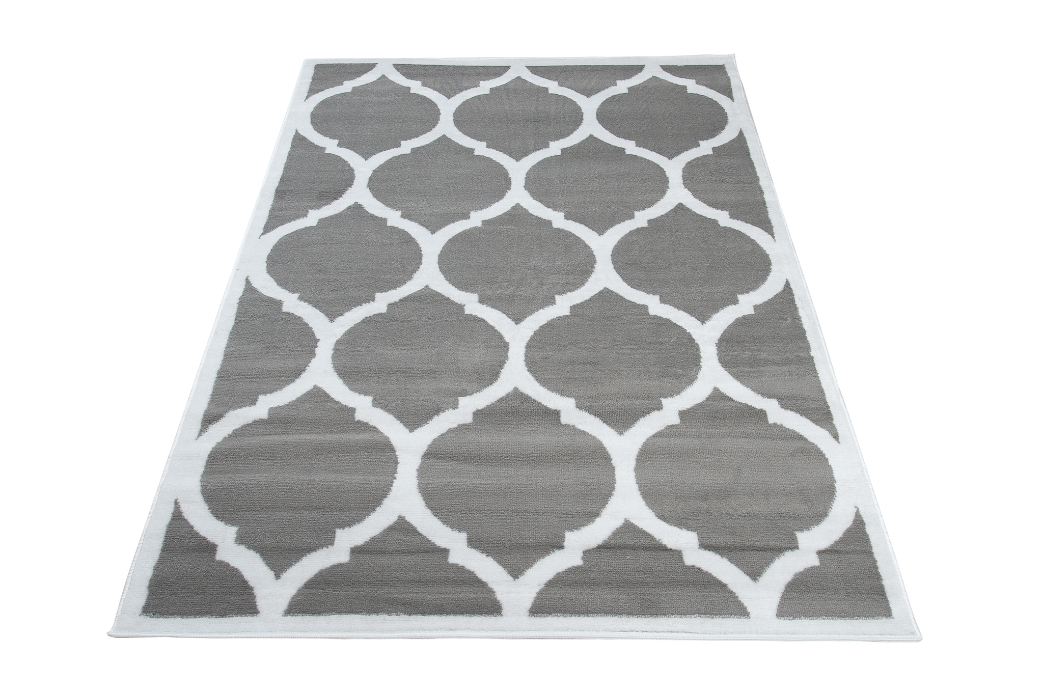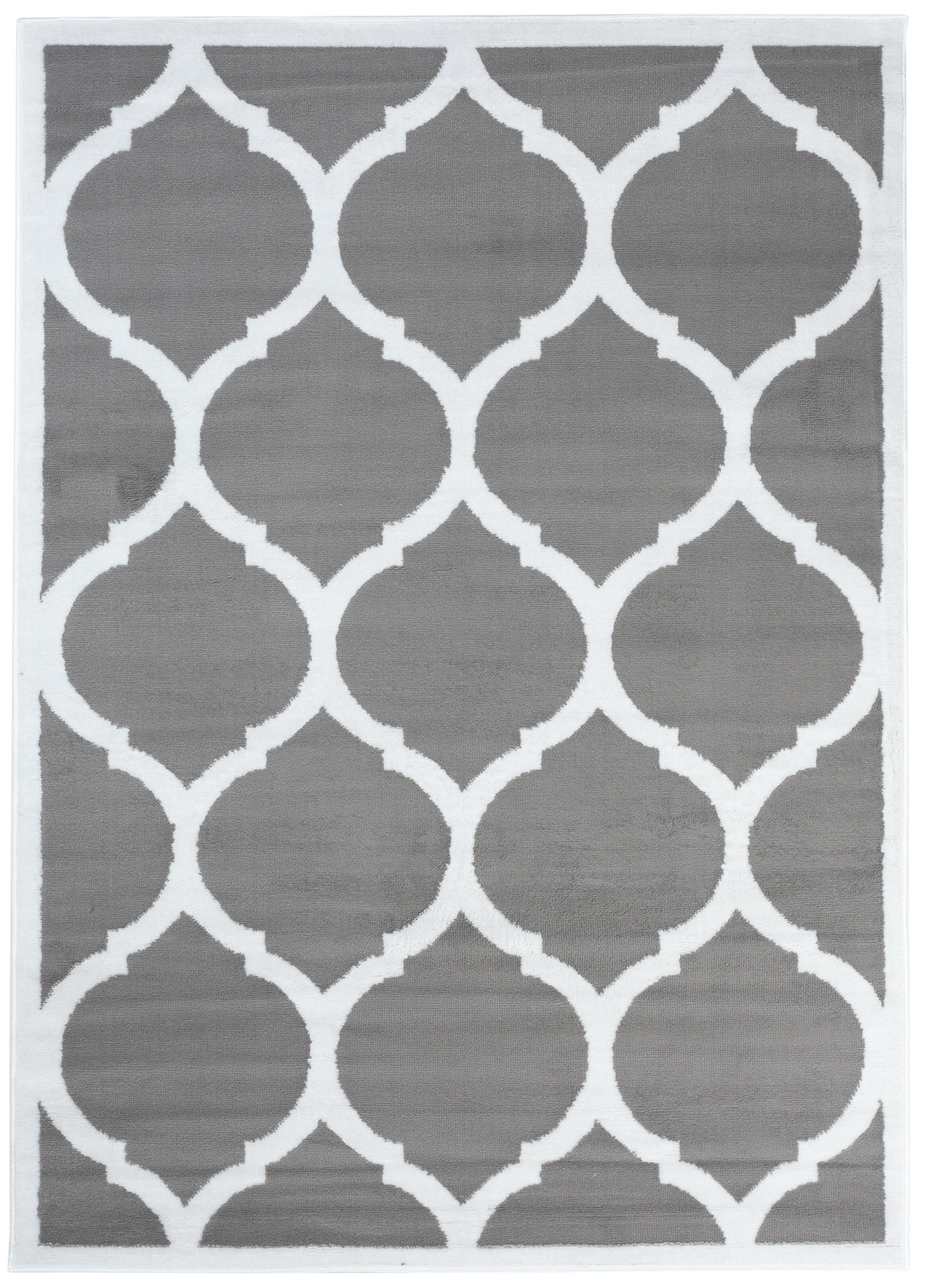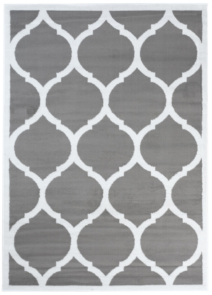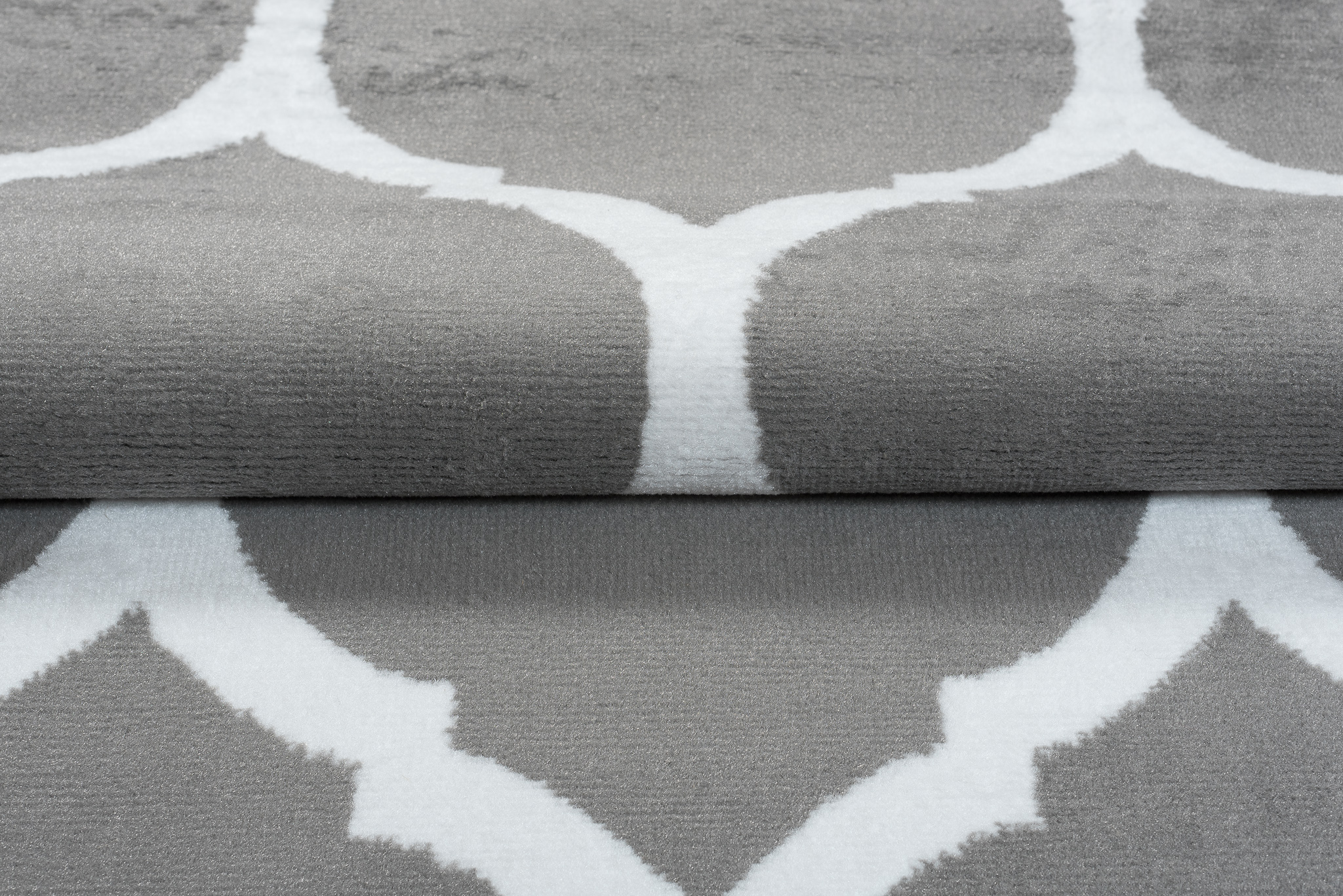 Dywan LuxurySzary Biały Marokański Trellis Ramka