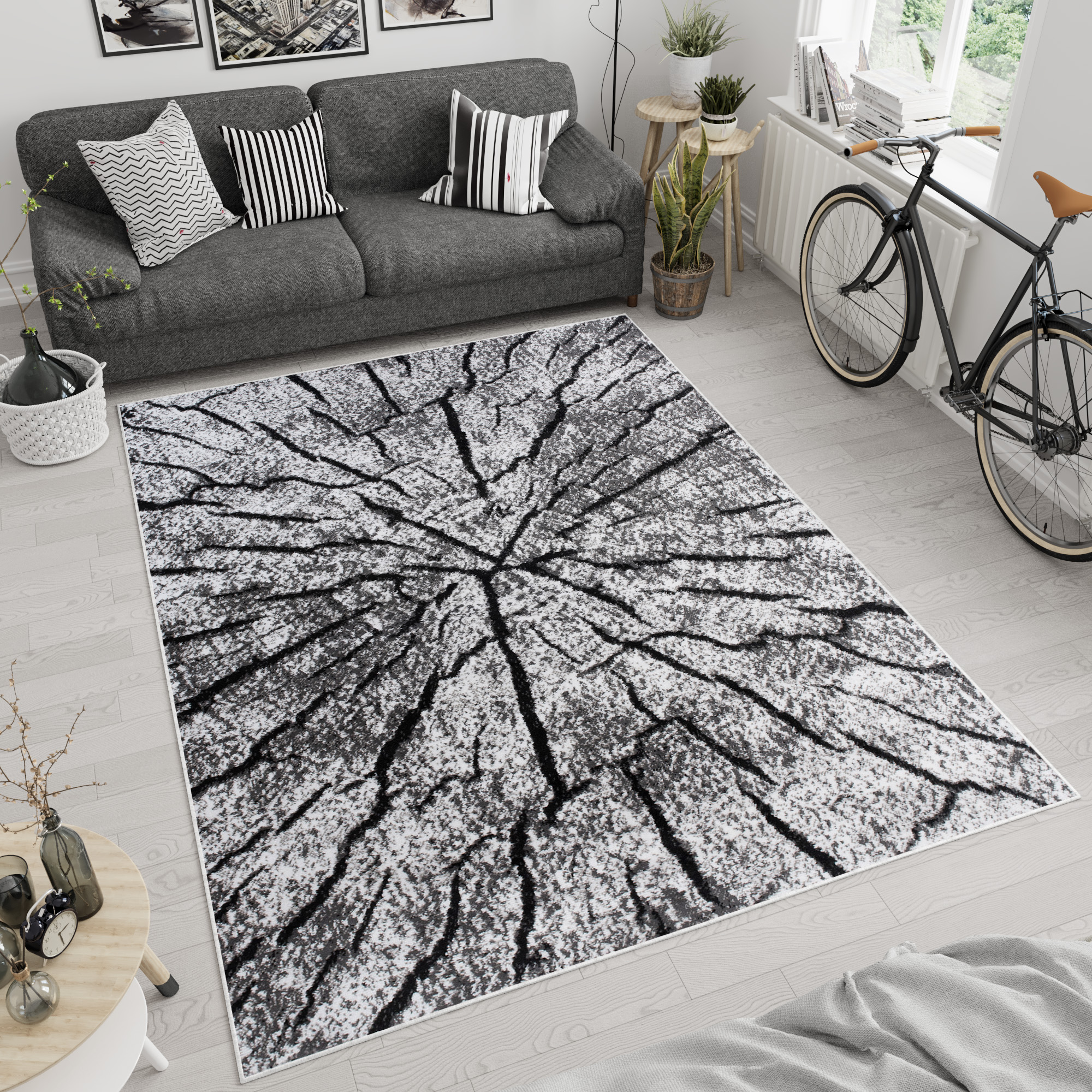 Dywan LuxurySzary Czarny Drewno Linie
