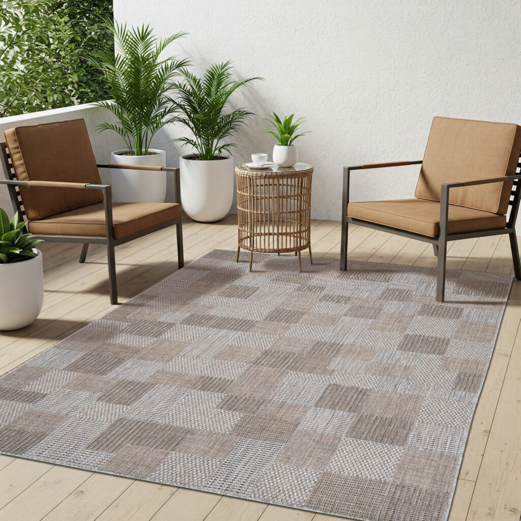Dywan MelissaBrązowy Szary Kwadraty Indoor Outdoor