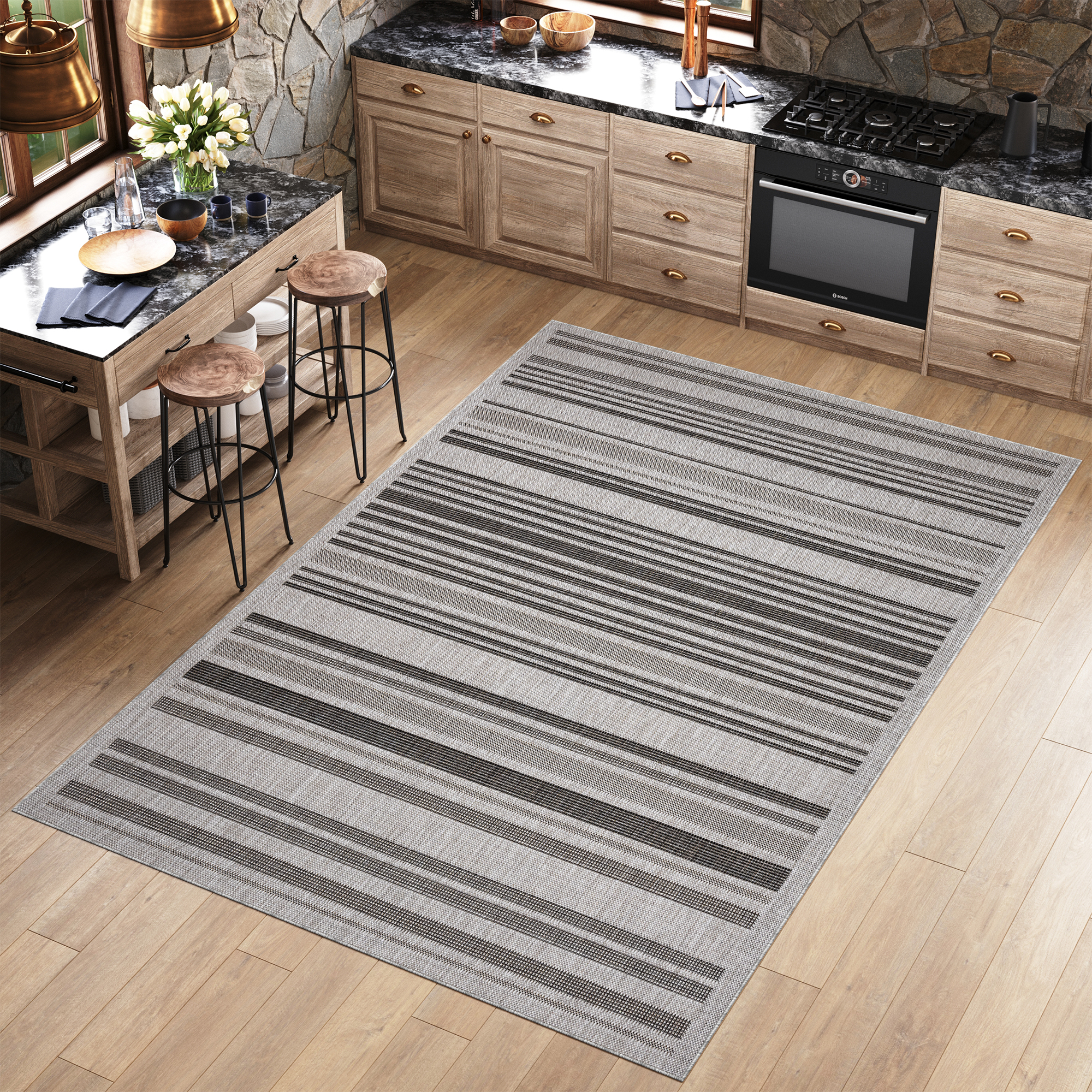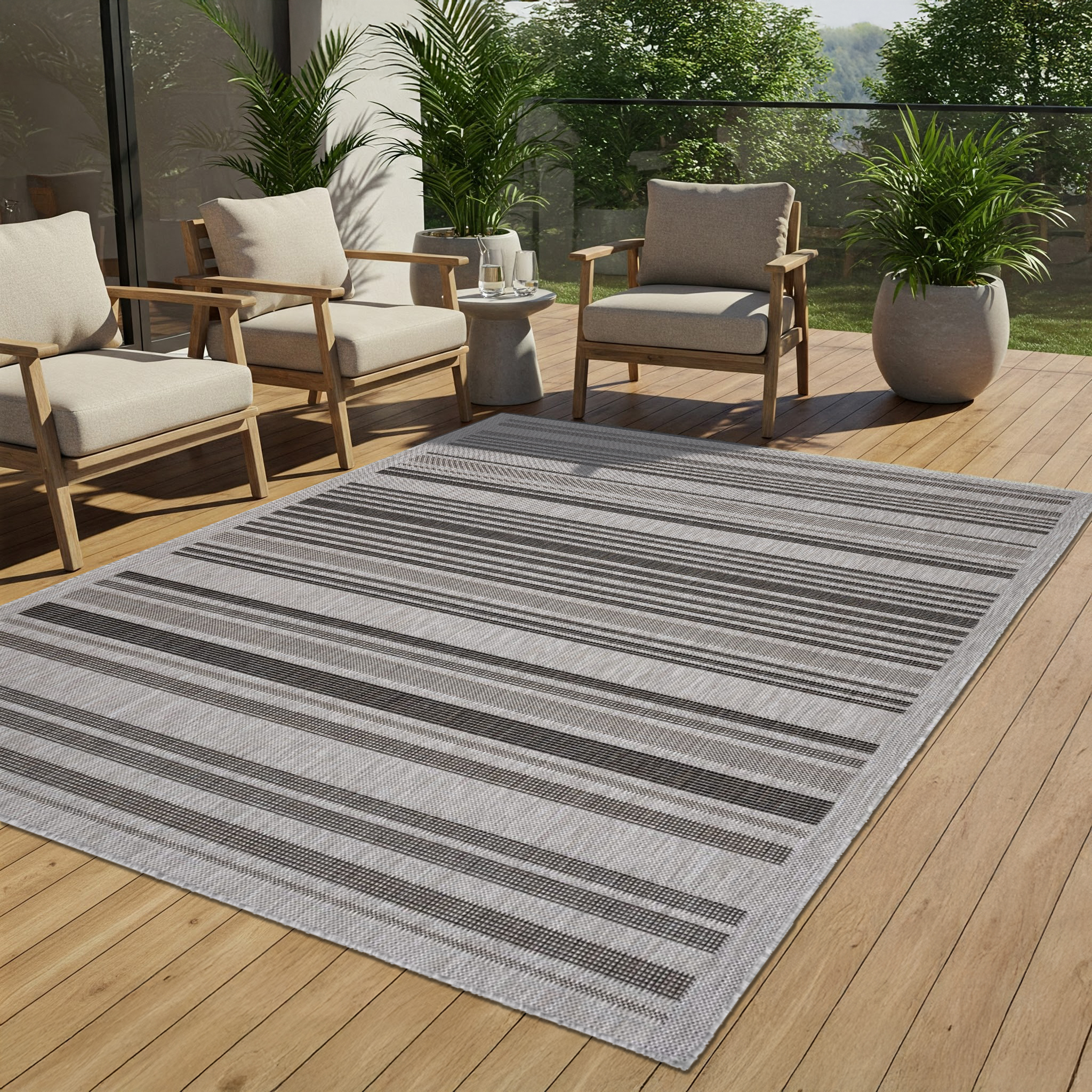 Dywan MelissaSzary Czarny Pasy Indoor Outdoor