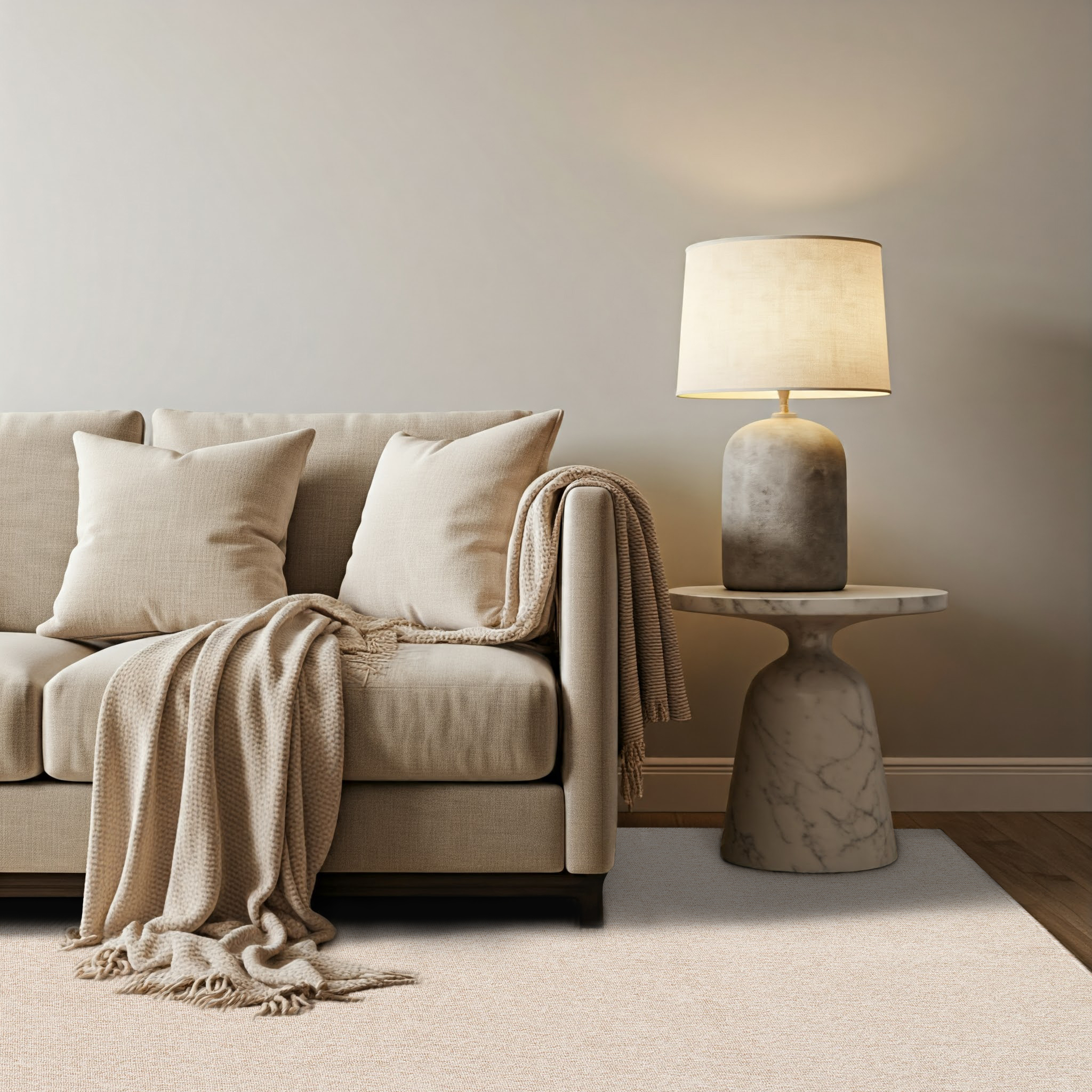 Ten kremowy dywan o nowoczesnym wzornictwie to doskonały wybór dla miłośników prostoty i elegancji. Jego jednolity, subtelny odcień wprowadza do wnętrza jasność i spokój, czyniąc przestrzeń bardziej przytulną i optycznie większą. Kremowy dywan świetnie sprawdzi się we wnętrzach minimalistycznych, skandynawskich oraz w stylu boho, gdzie jego neutralna kolorystyka doskonale współgra z naturalnymi materiałami, takimi jak drewno, len czy wiklina. To dodatek, który w prosty sposób podkreśli elegancję każdego pomieszczenia.