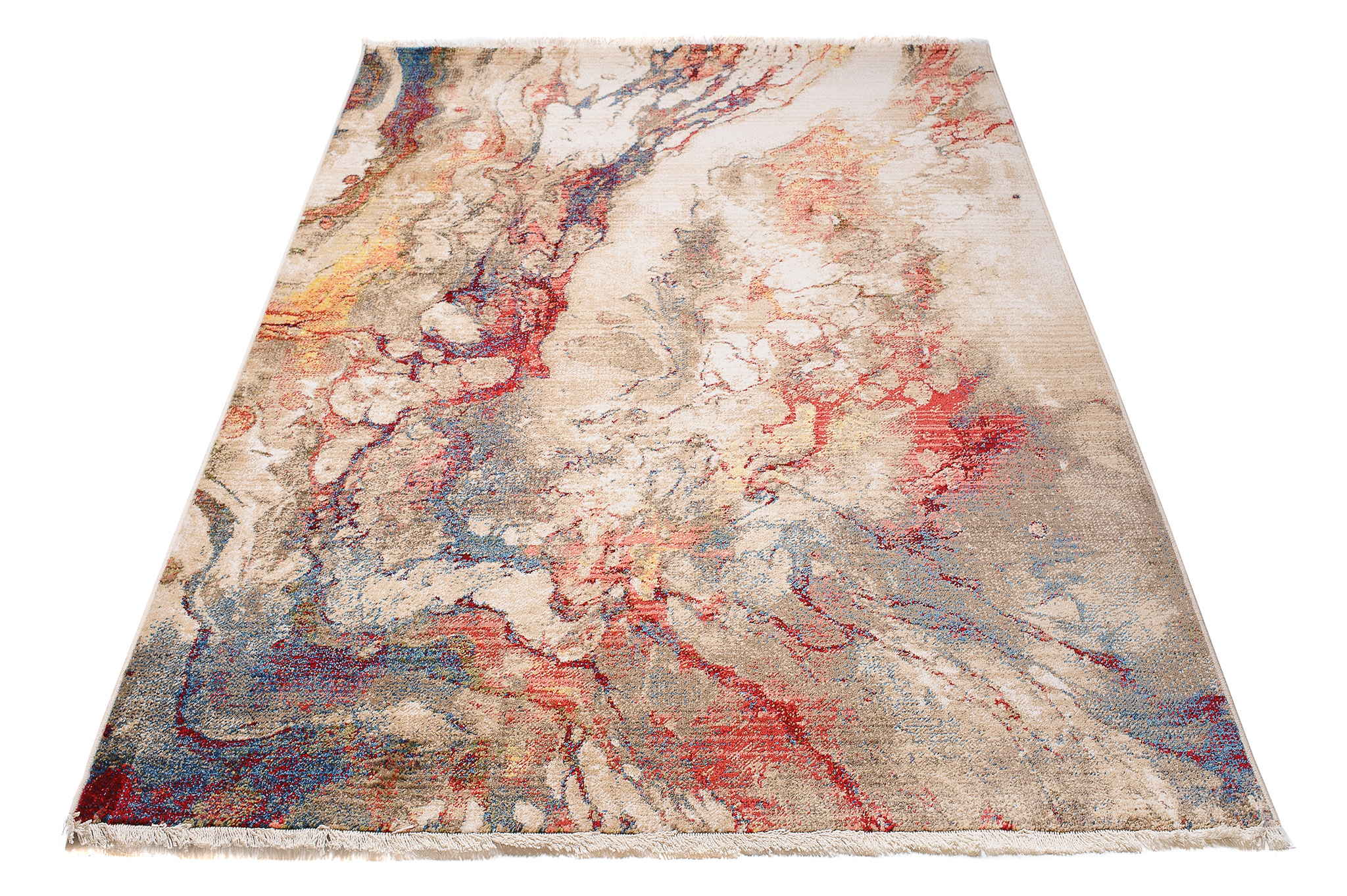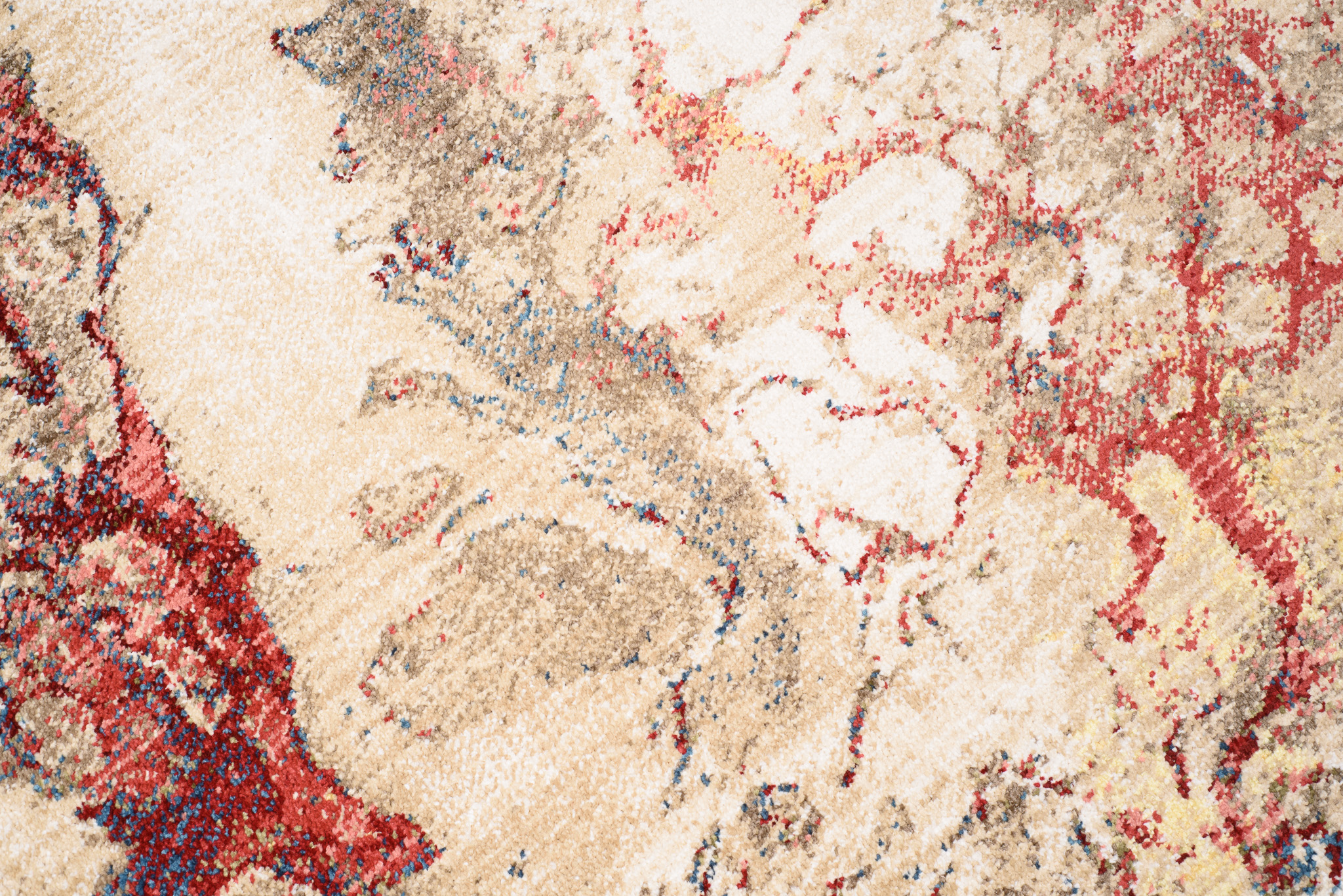 Dywan RivoliAbstrakcyjny Beżowy Czerwony Fale z Frędzlami