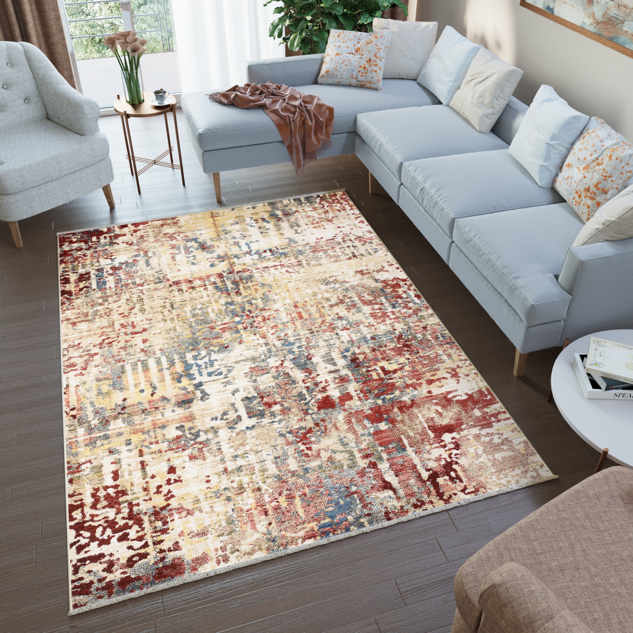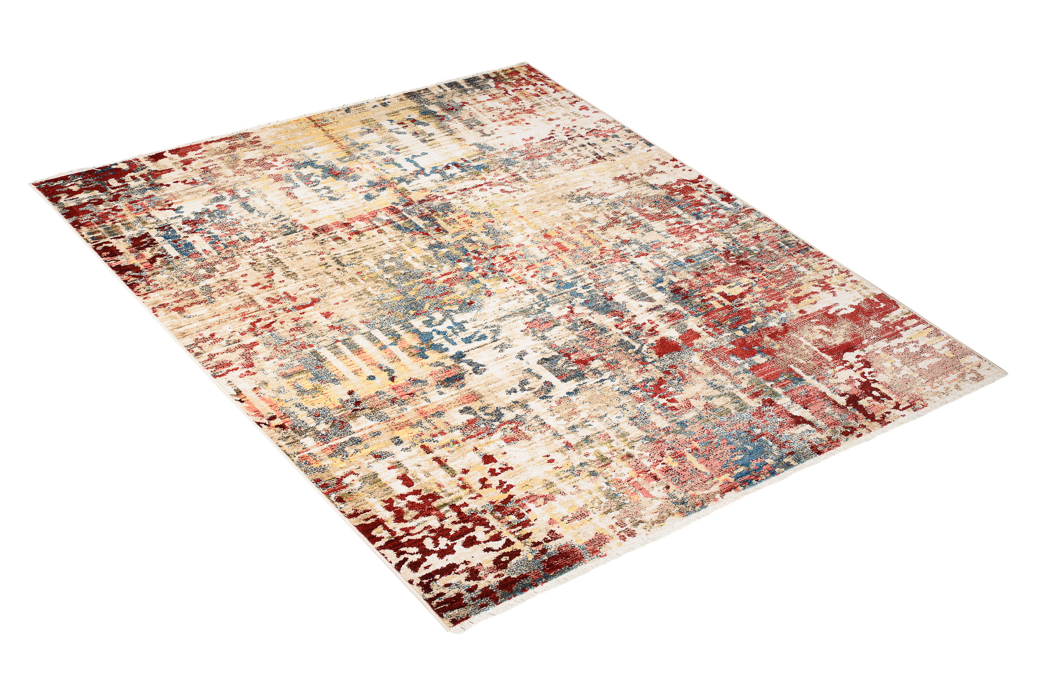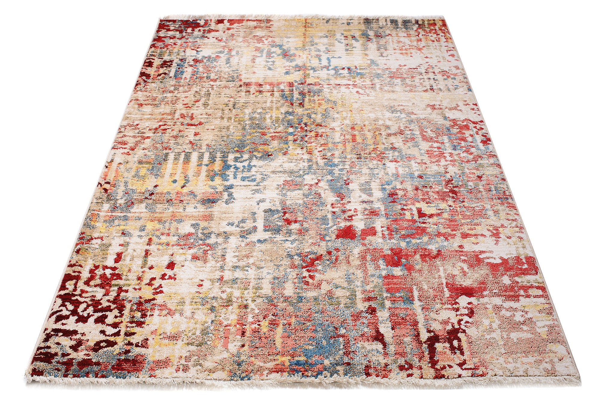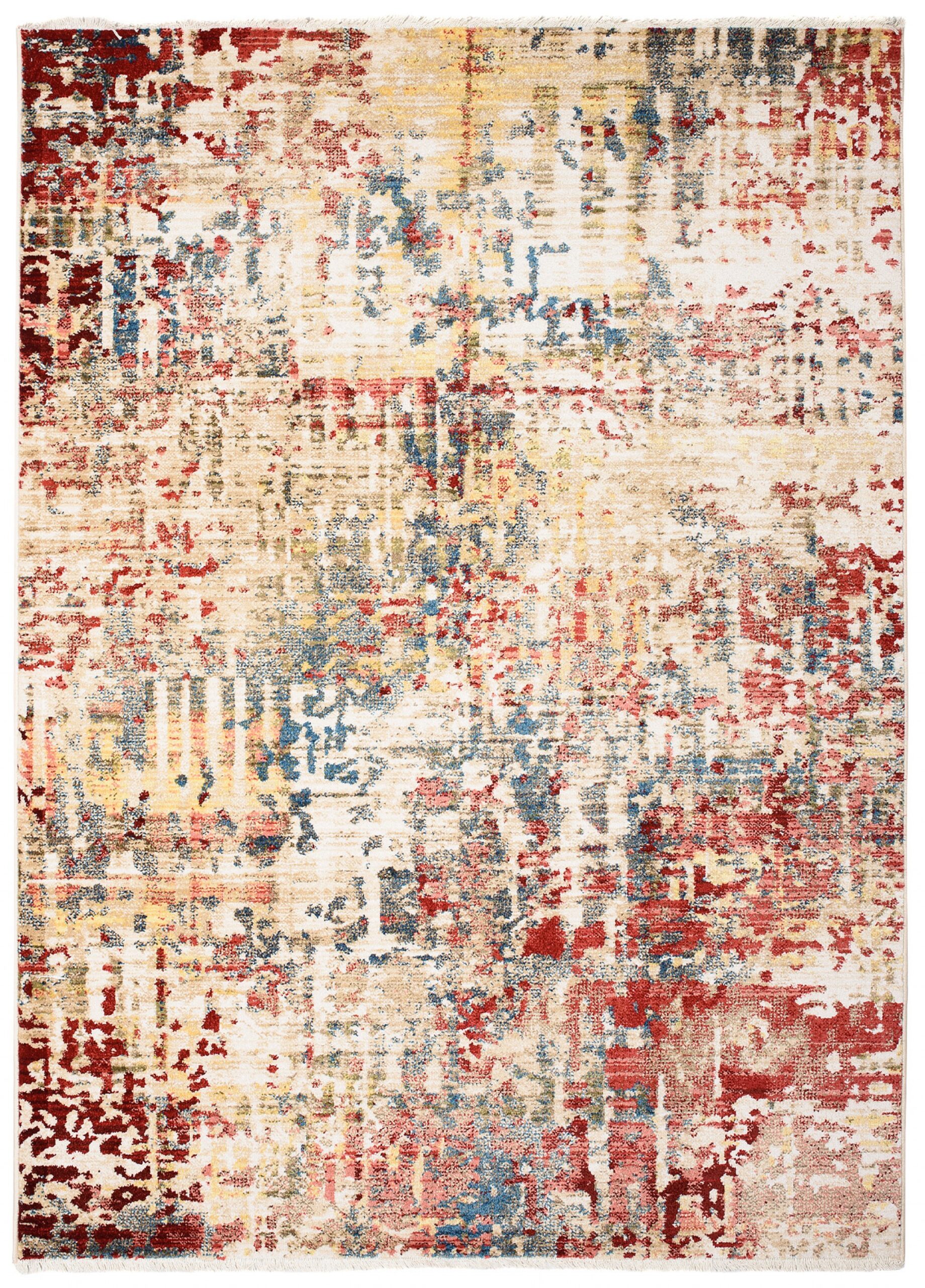 Dywan RivoliAbstrakcyjny Beżowy Czerwony z Frędzlami