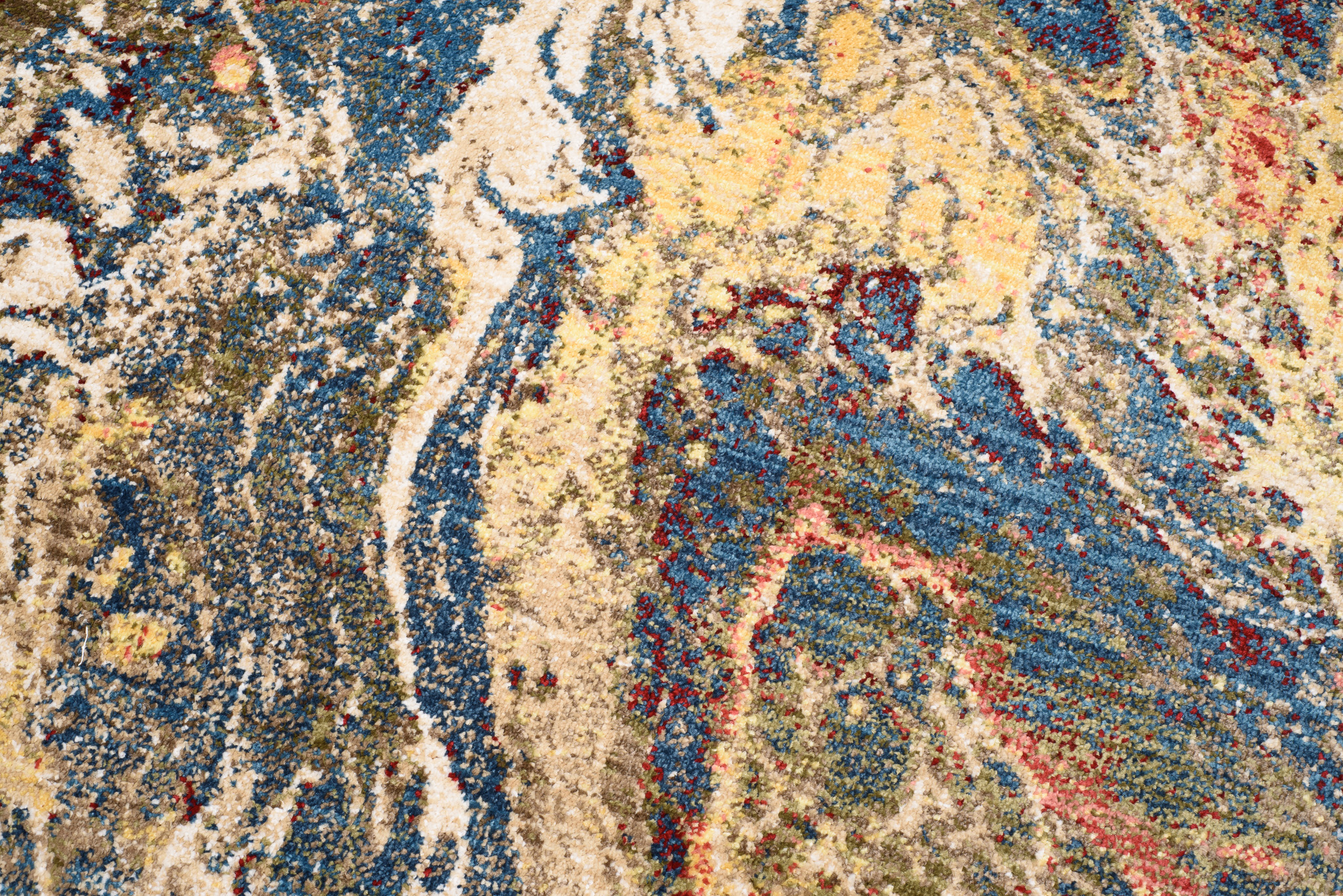 Dywan RivoliAbstrakcyjny Beżowy Niebieski Fale z Frędzlami