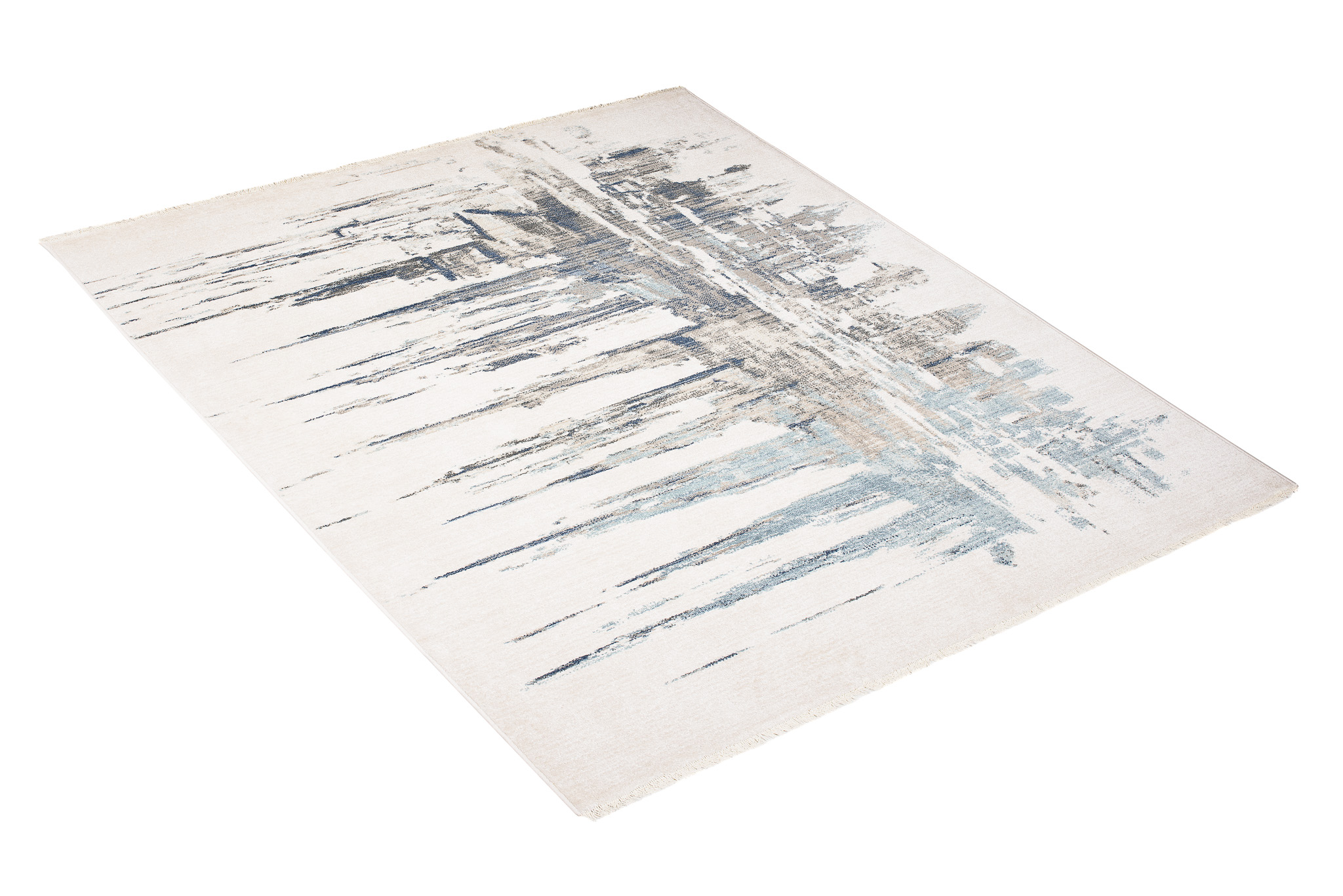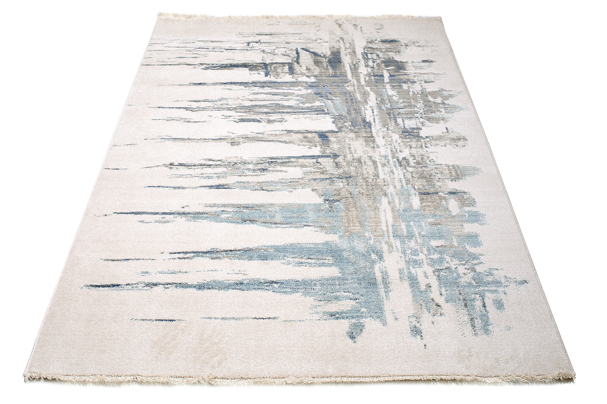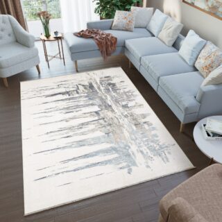 Dywan RivoliAbstrakcyjny Kremowy Niebieski z Frędzlami