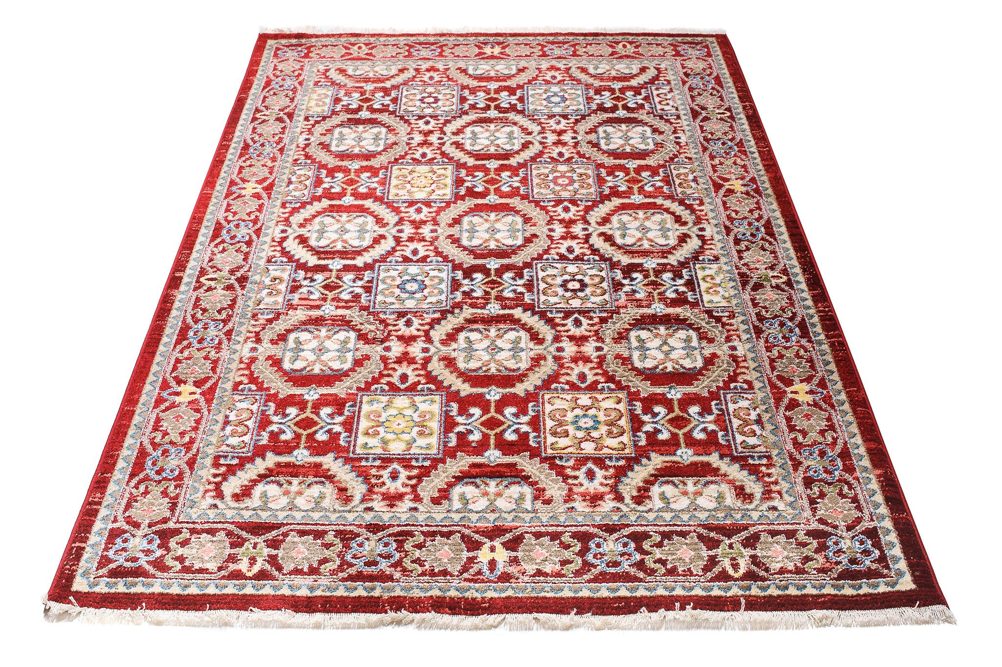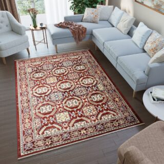 Dywan RivoliCzerwony Geometryczny Tradycyjny z Frędzlami