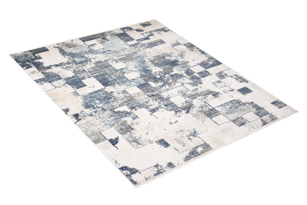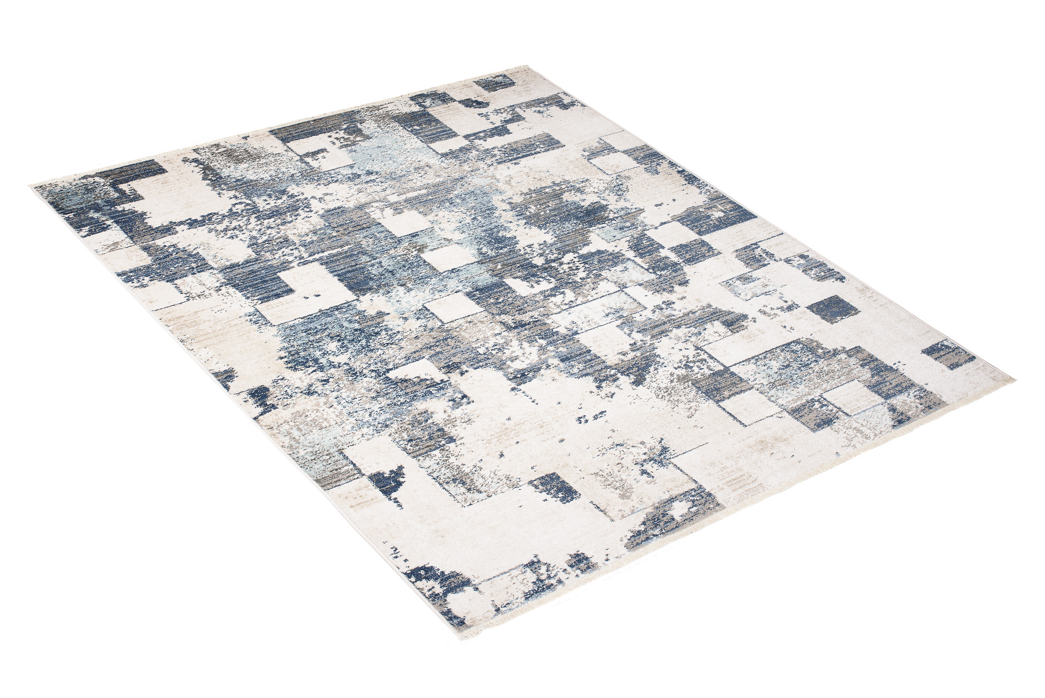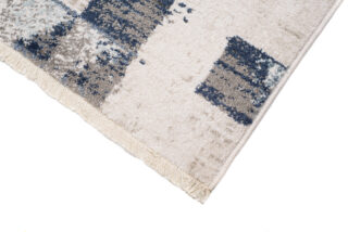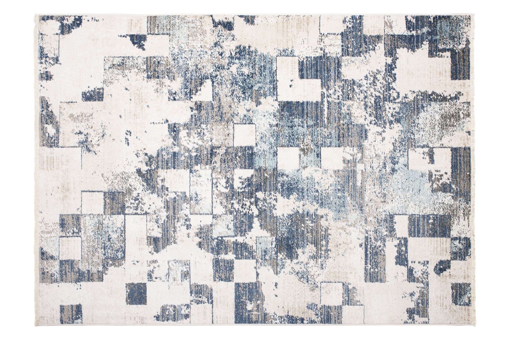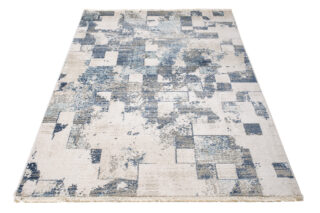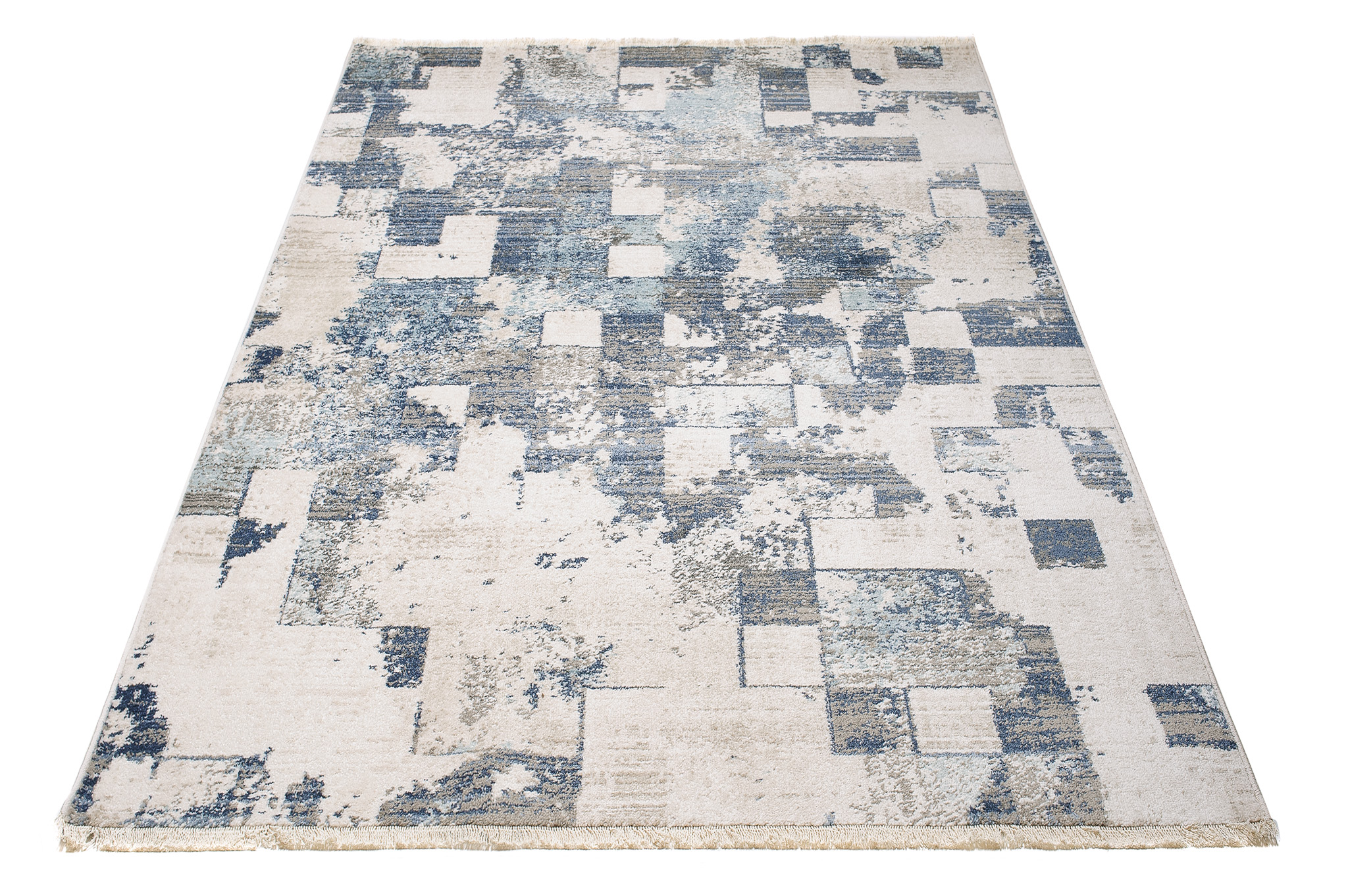 Dywan RivoliKremowy Niebieski Kwadraty Przetarcia z Frędzlami