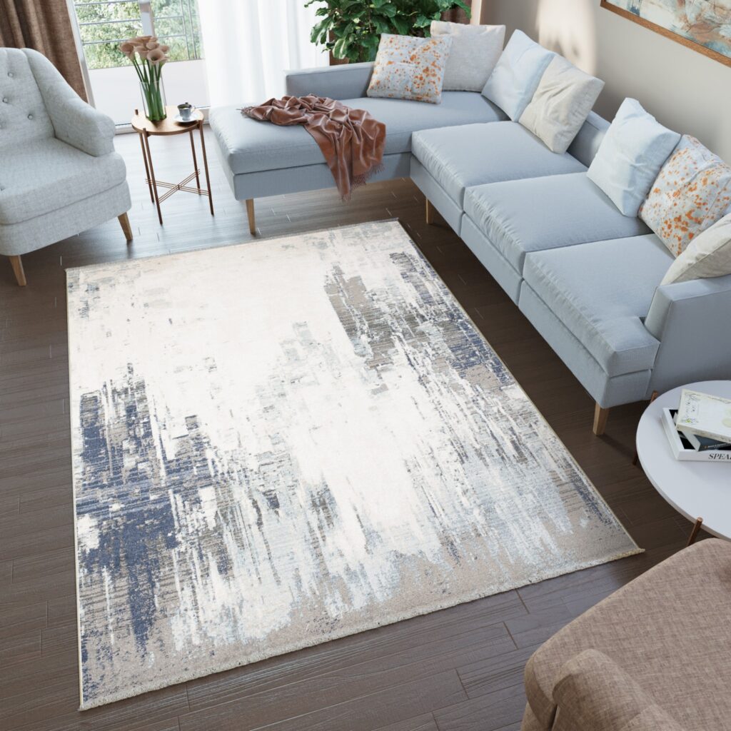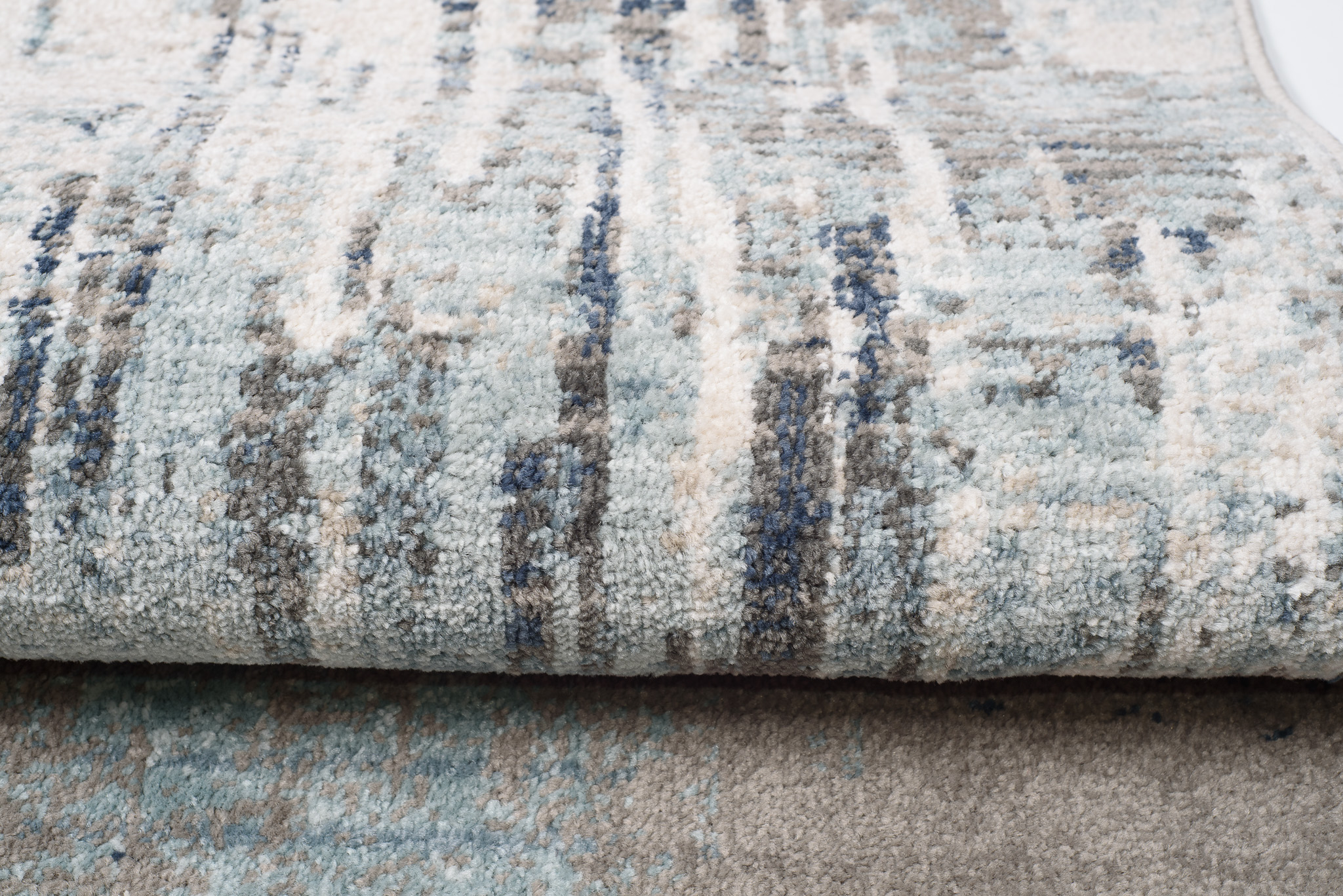 Dywan RivoliKremowy Niebieski Przetarcia z Frędzlami