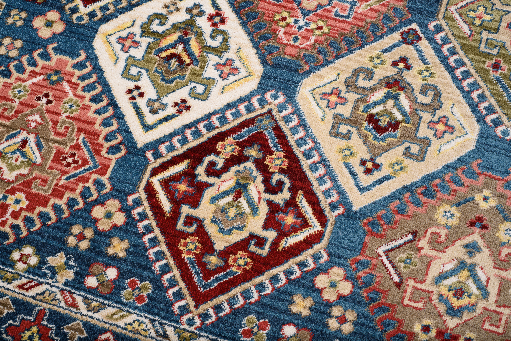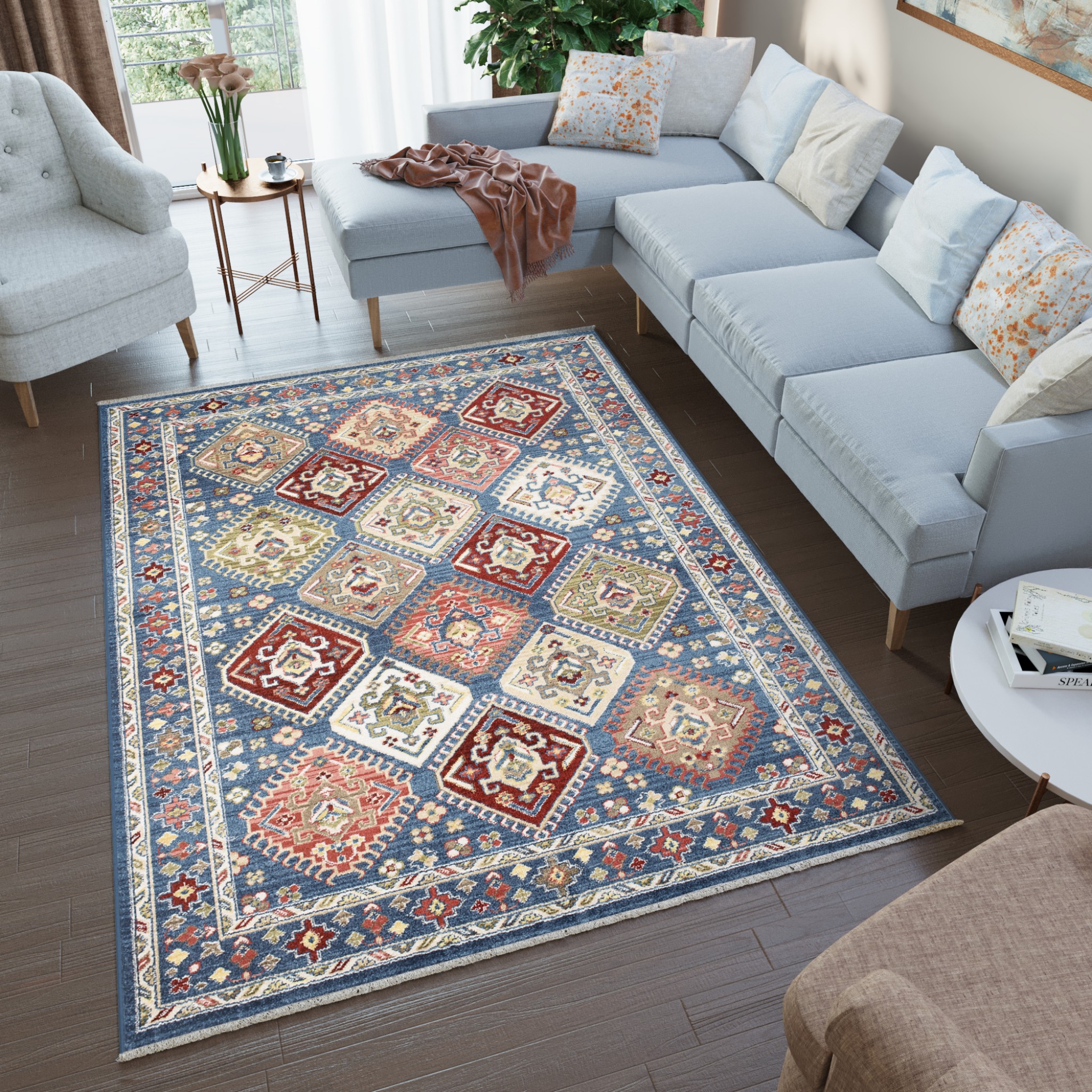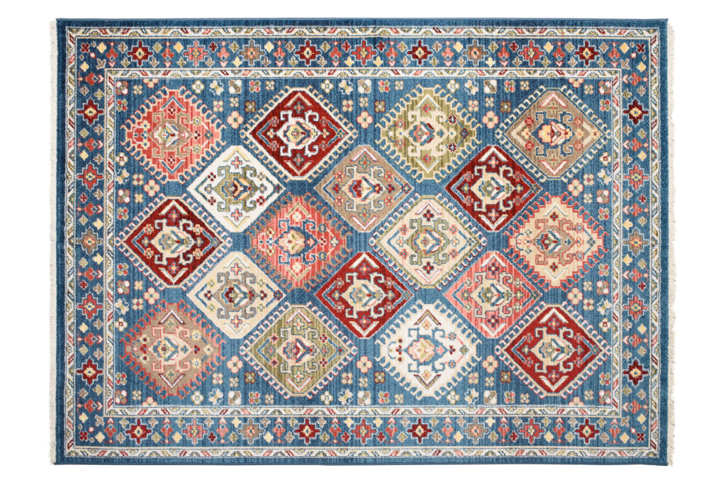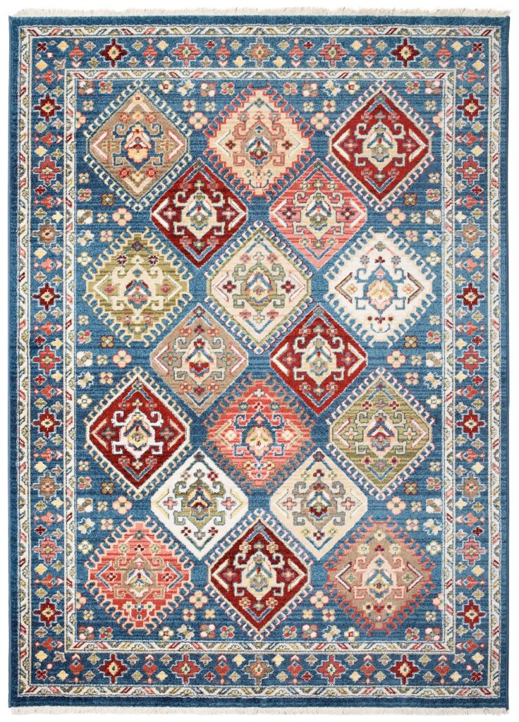 Dywan RivoliNiebieski Geometryczny Ornamenty z Frędzlami
