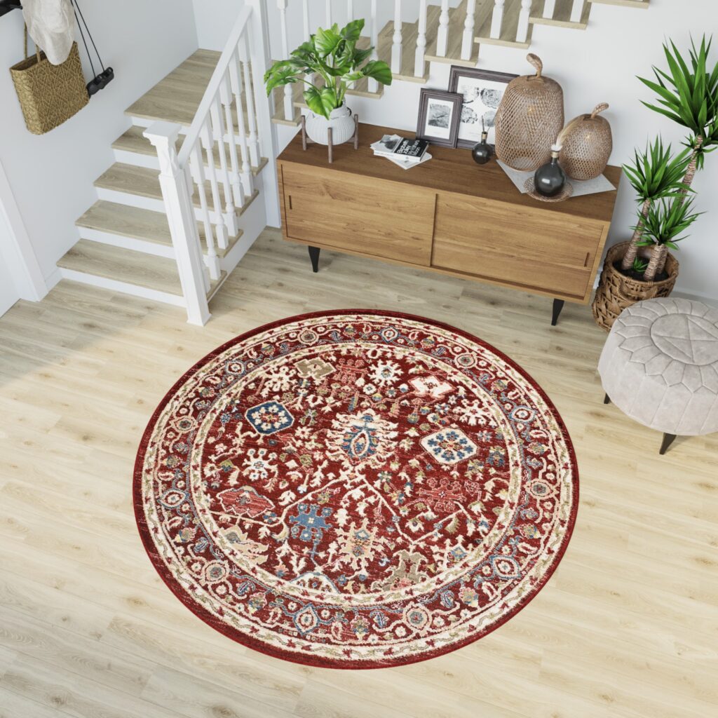 Dywan RivoliOkrągły Czerwony Kremowy Klasyczny