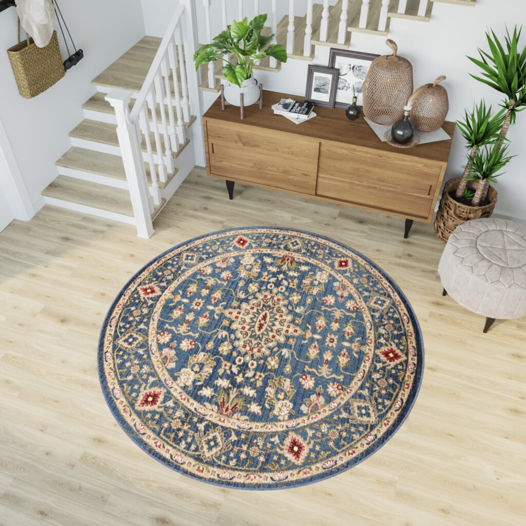 Dywan RivoliOkrągły Niebieski Kremowy Ornamenty