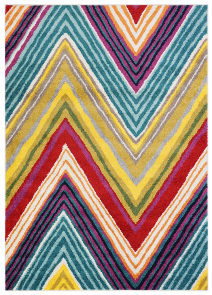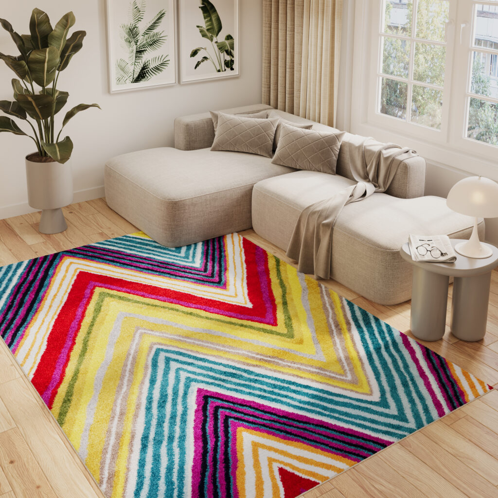 Wielokolorowy dywan w geometryczne zygzaki – stylowy akcent do nowoczesnych wnętrz