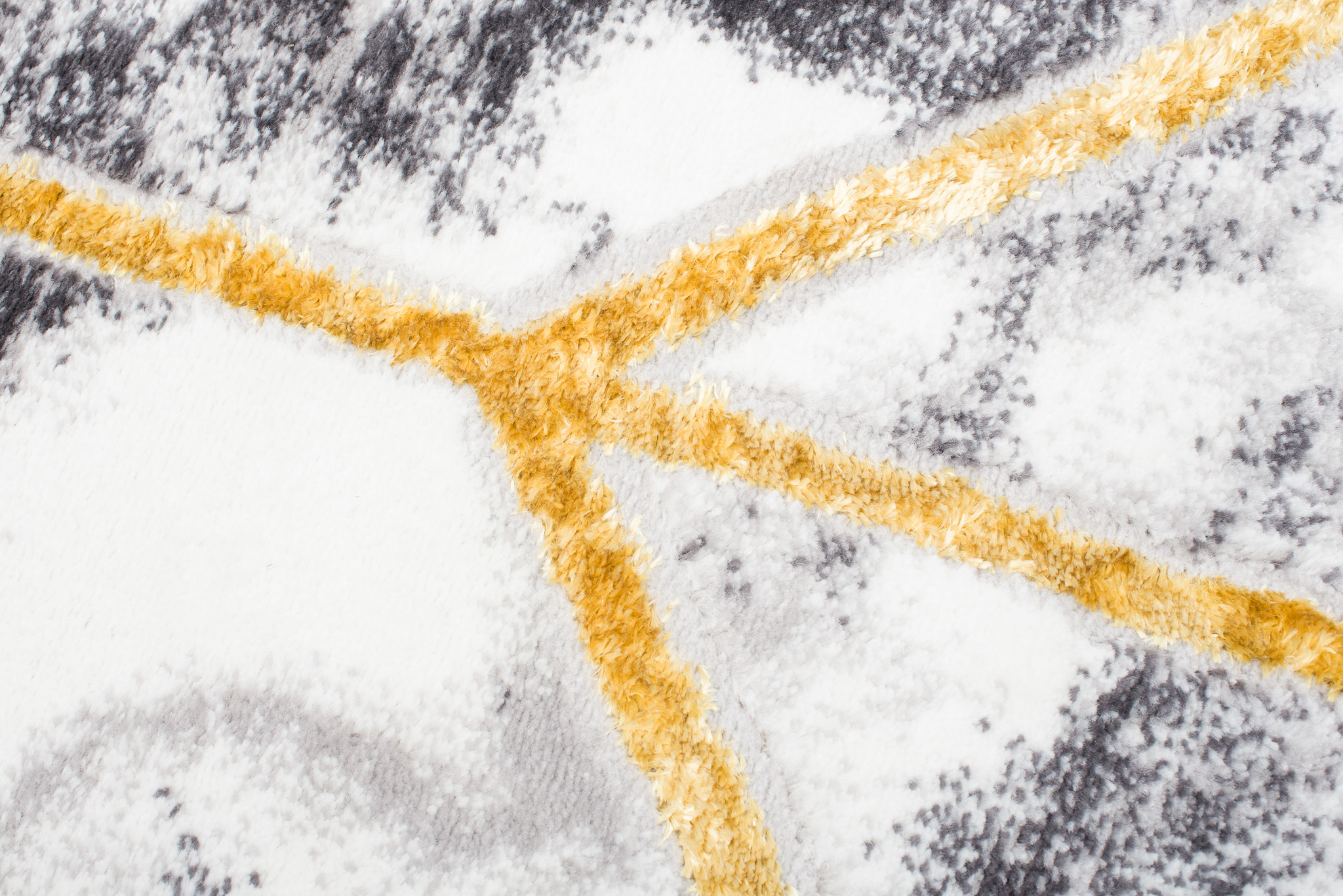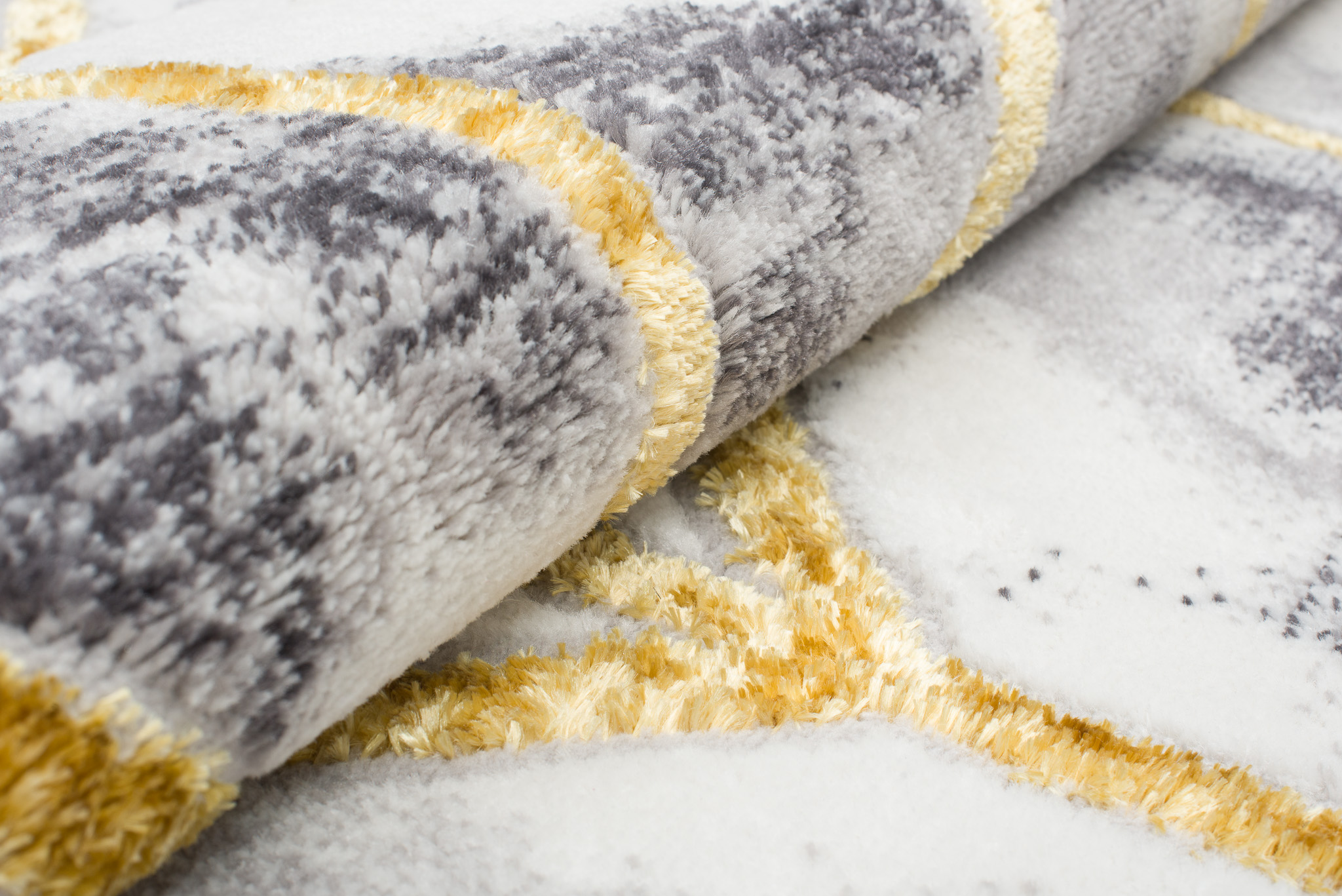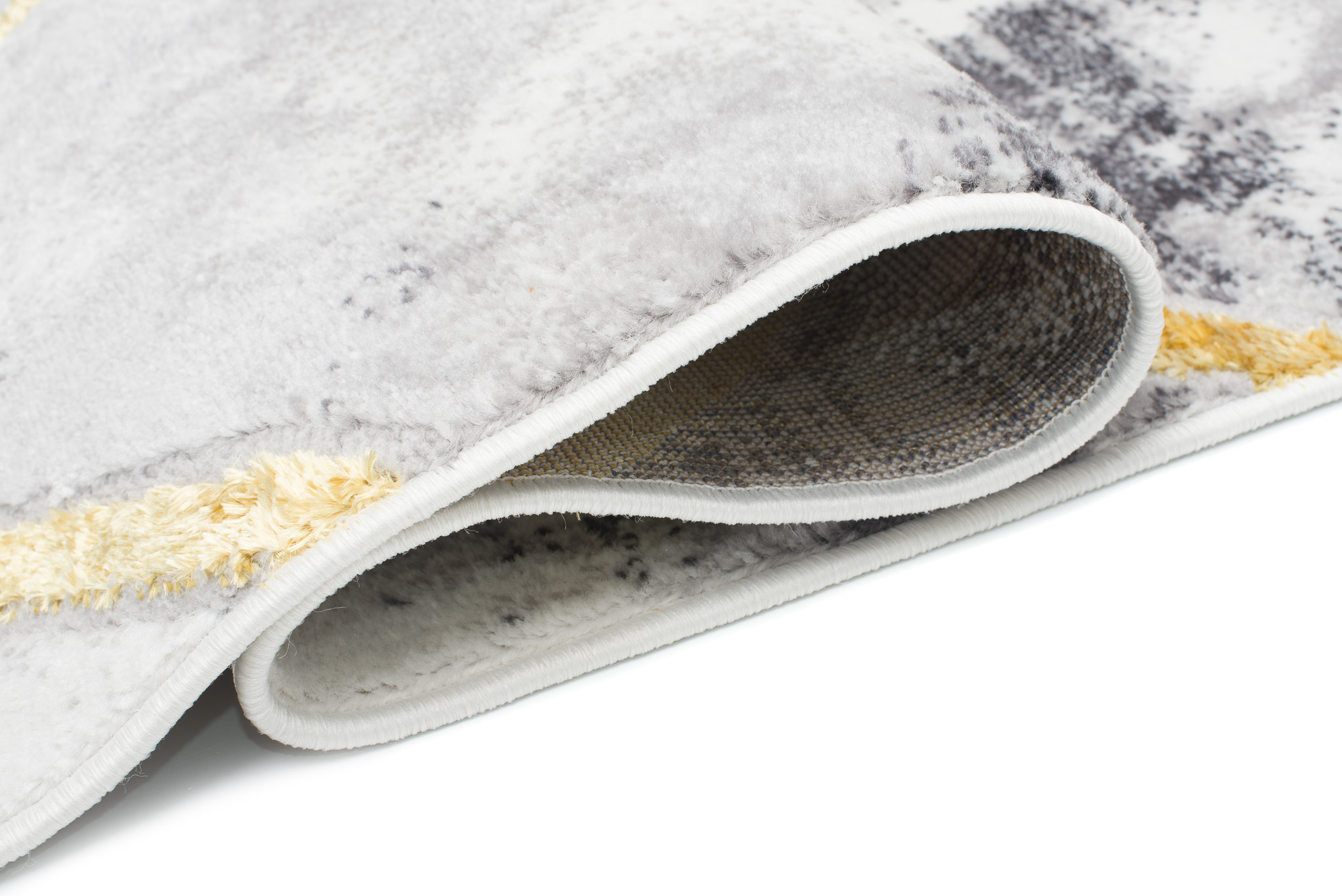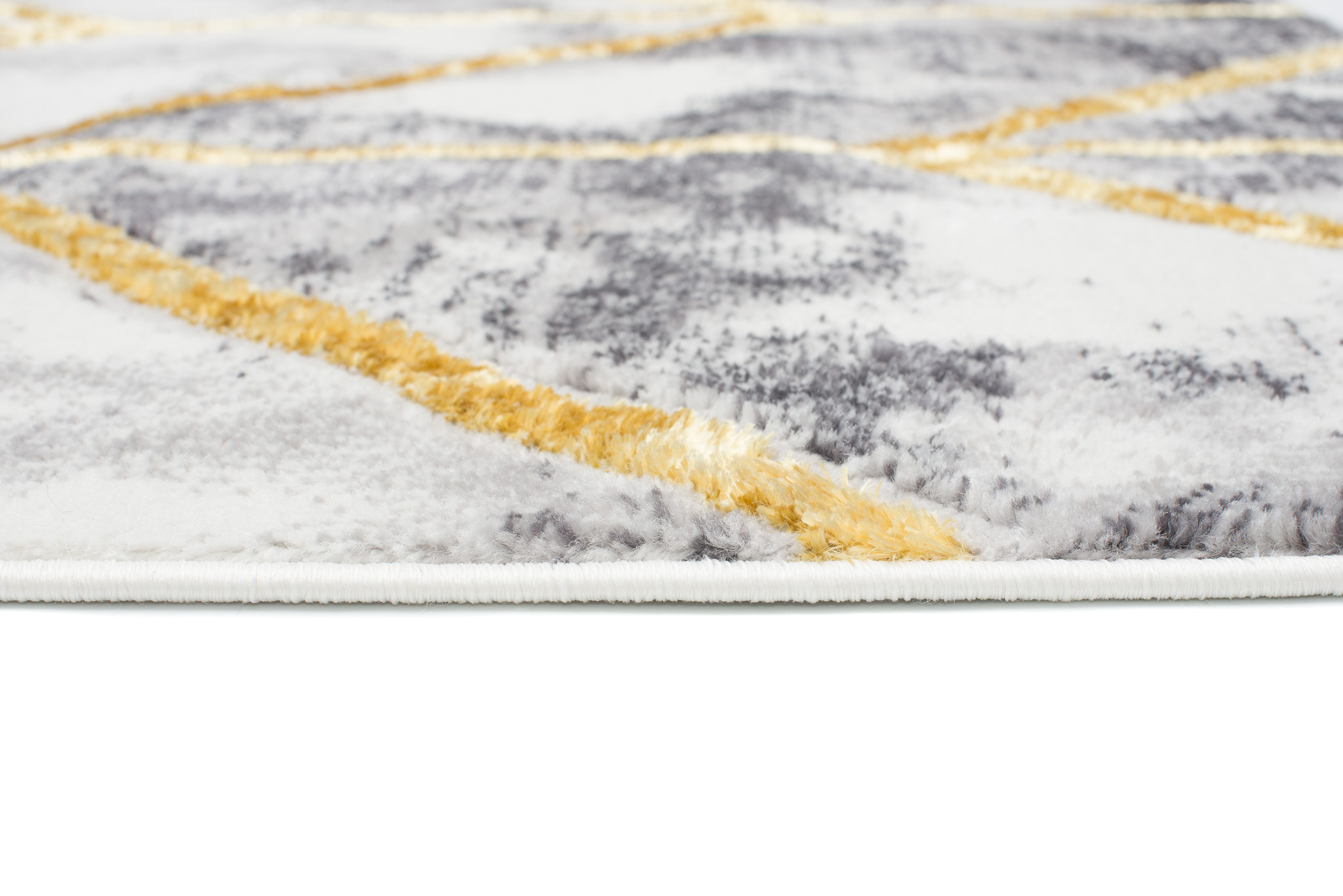 To, co wyróżnia tę kolekcję spośród innych, to abstrakcyjne wzory i subtelna złota nitka, która dodaje dywanom wyjątkowego blasku. Dominujące kolory kolekcji to głęboki szary, elegancki granatowy oraz luksusowy złoty, które harmonijnie łączą się ze sobą, tworząc przyciągający wzrok efekt wizualny.