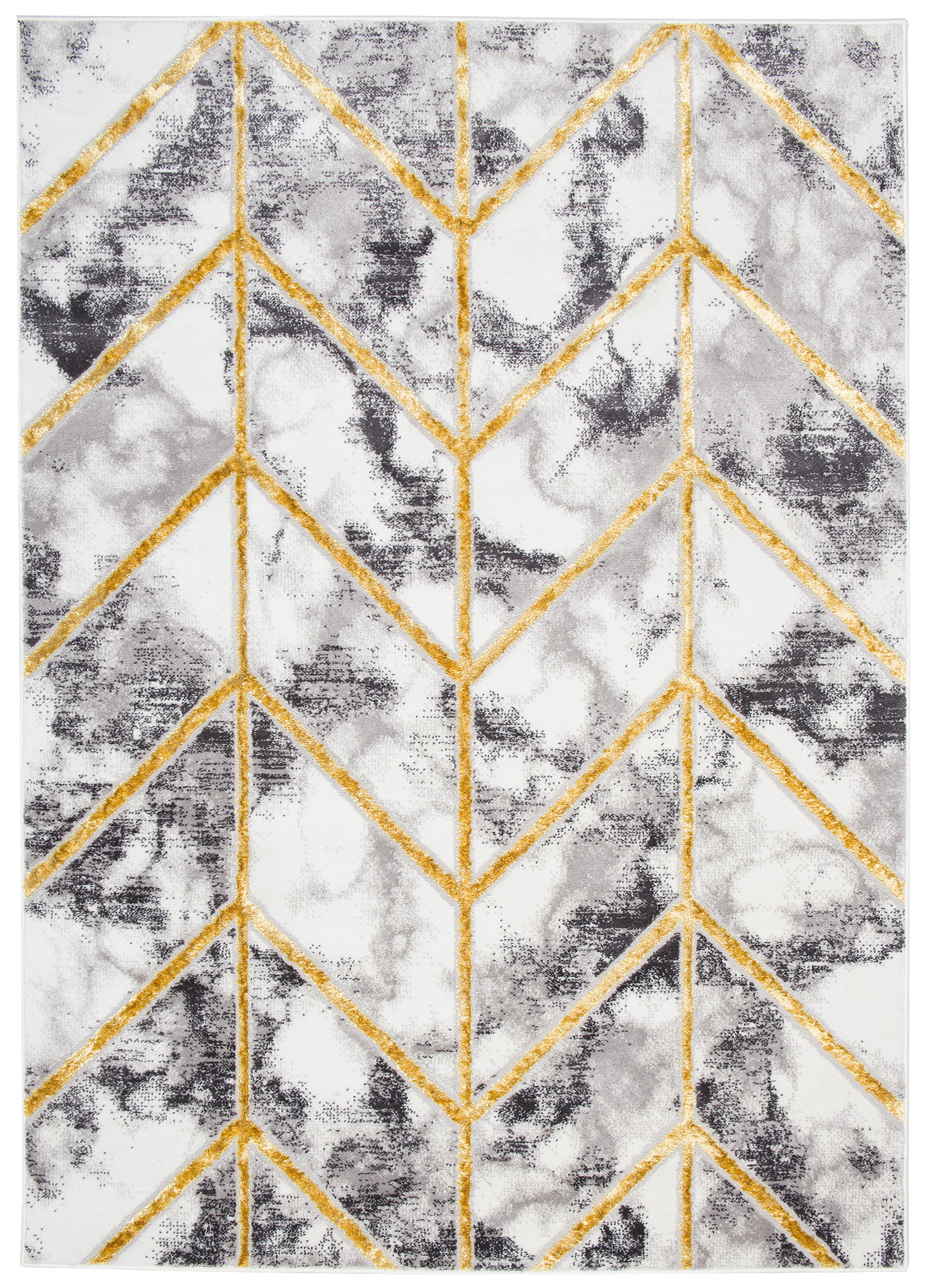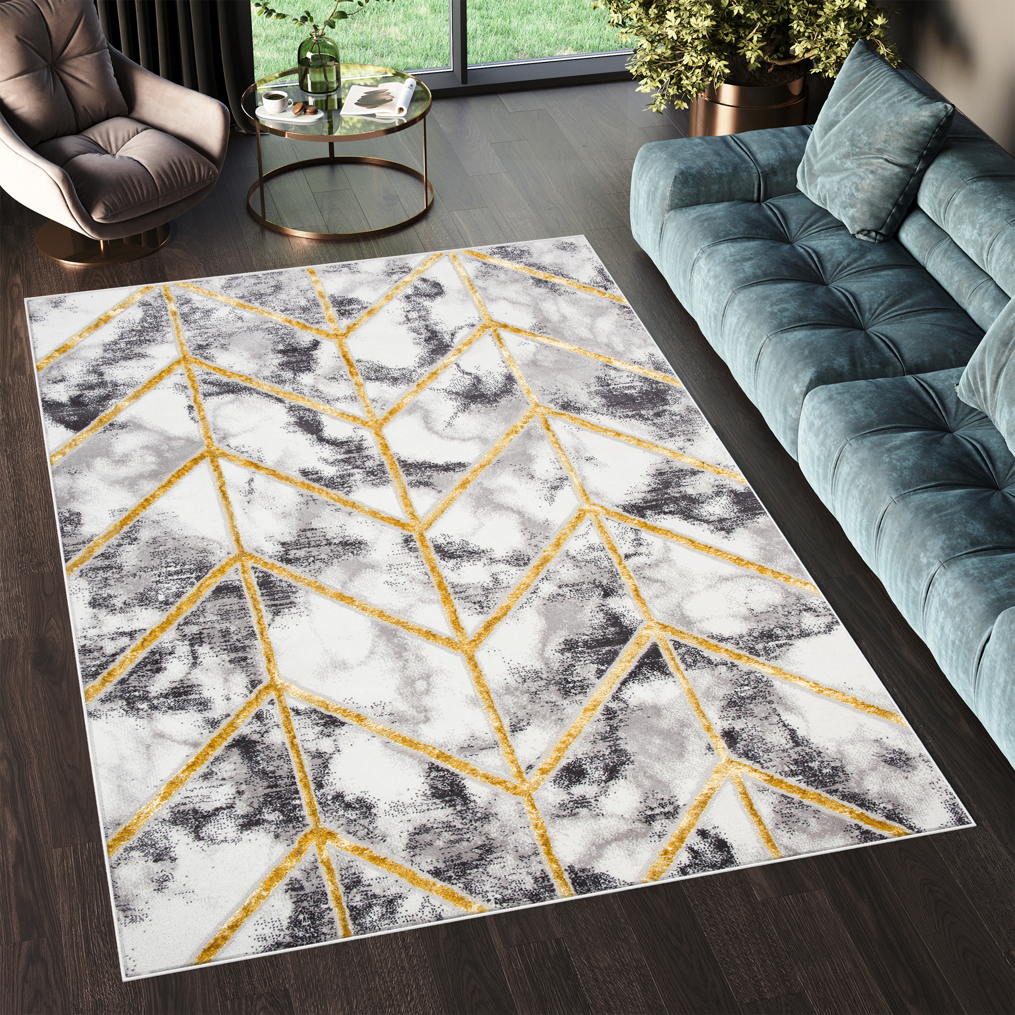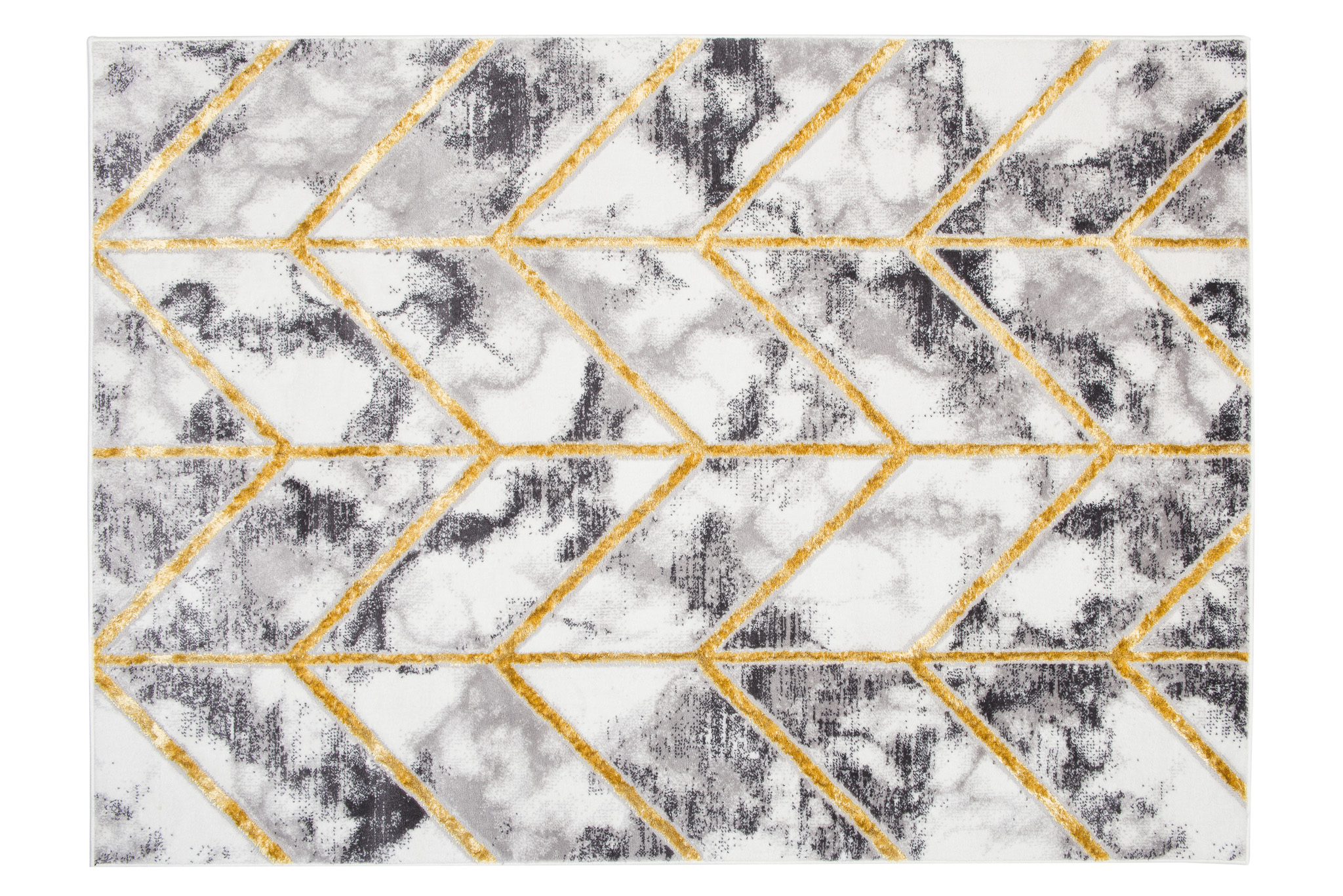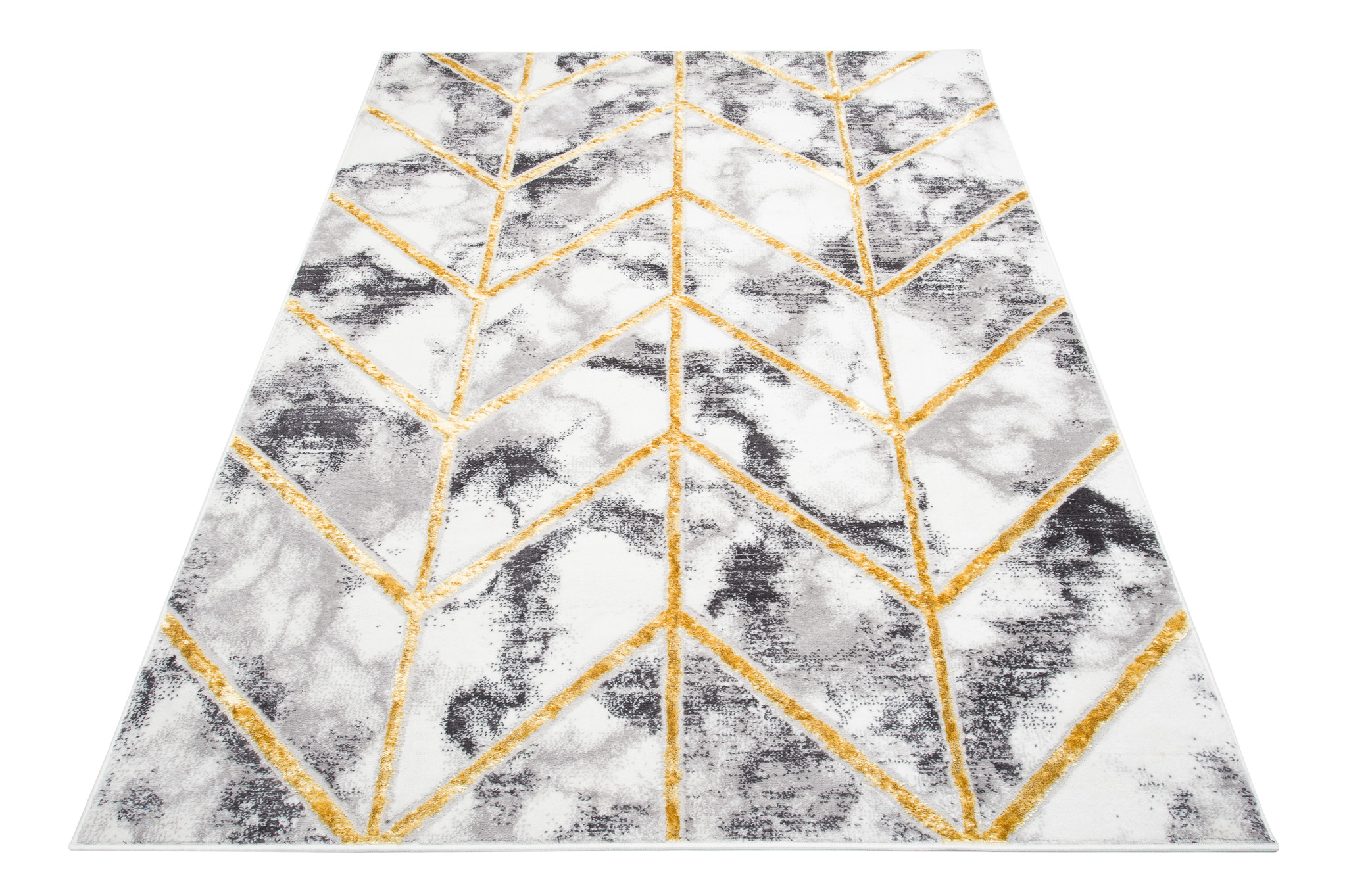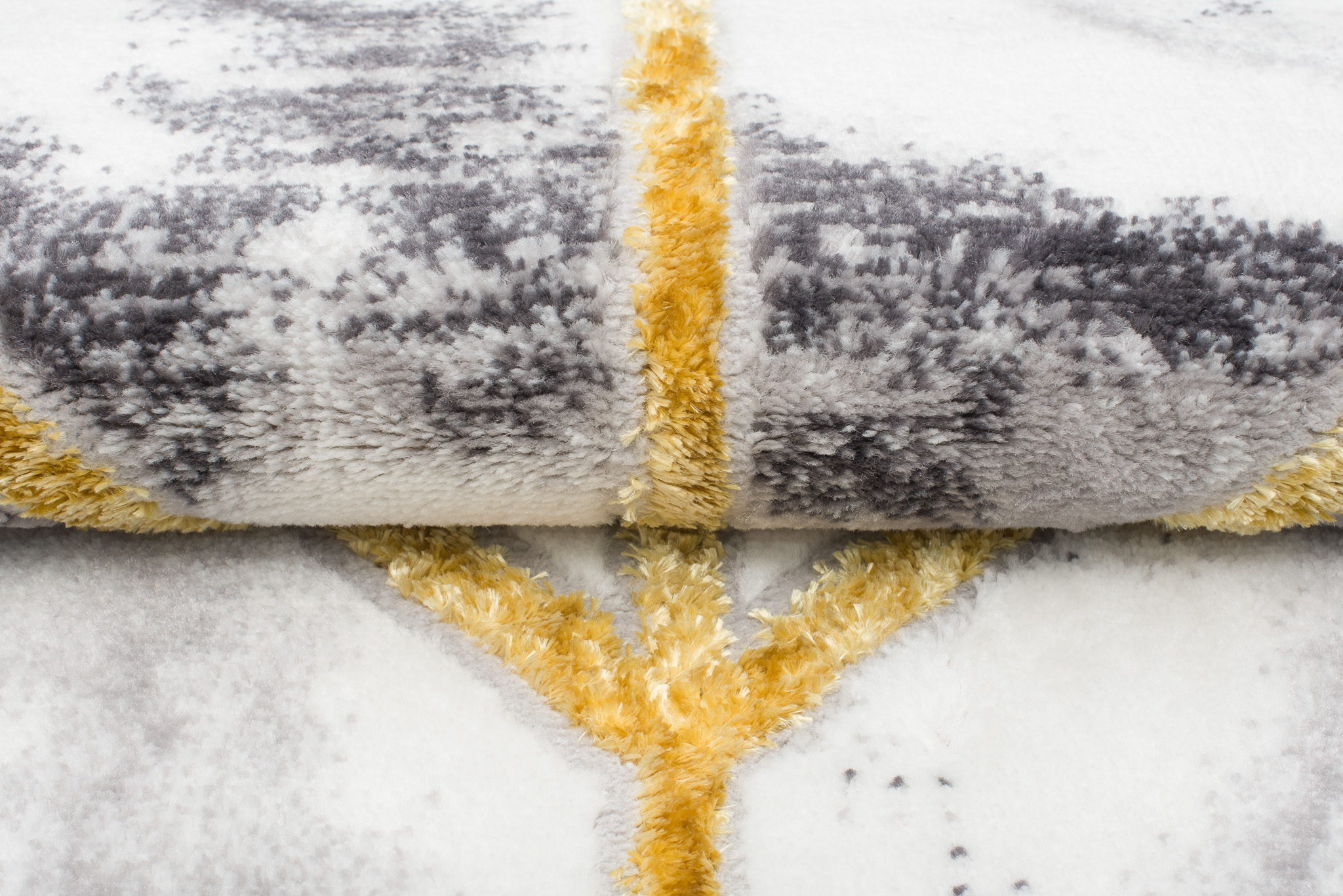 To, co wyróżnia tę kolekcję spośród innych, to abstrakcyjne wzory i subtelna złota nitka, która dodaje dywanom wyjątkowego blasku. Dominujące kolory kolekcji to głęboki szary, elegancki granatowy oraz luksusowy złoty, które harmonijnie łączą się ze sobą, tworząc przyciągający wzrok efekt wizualny.