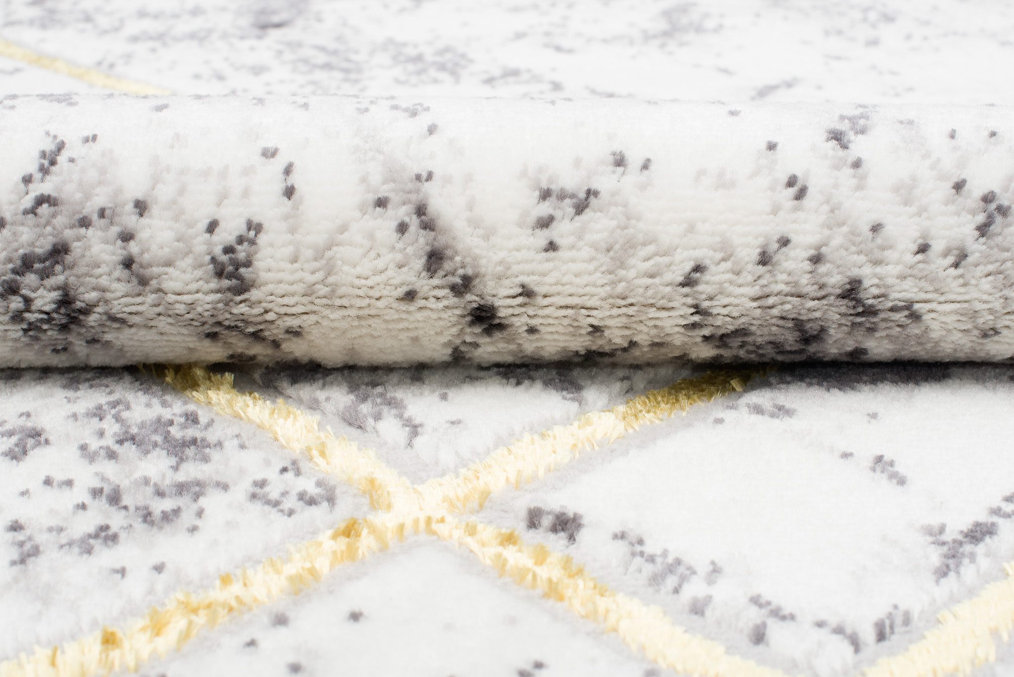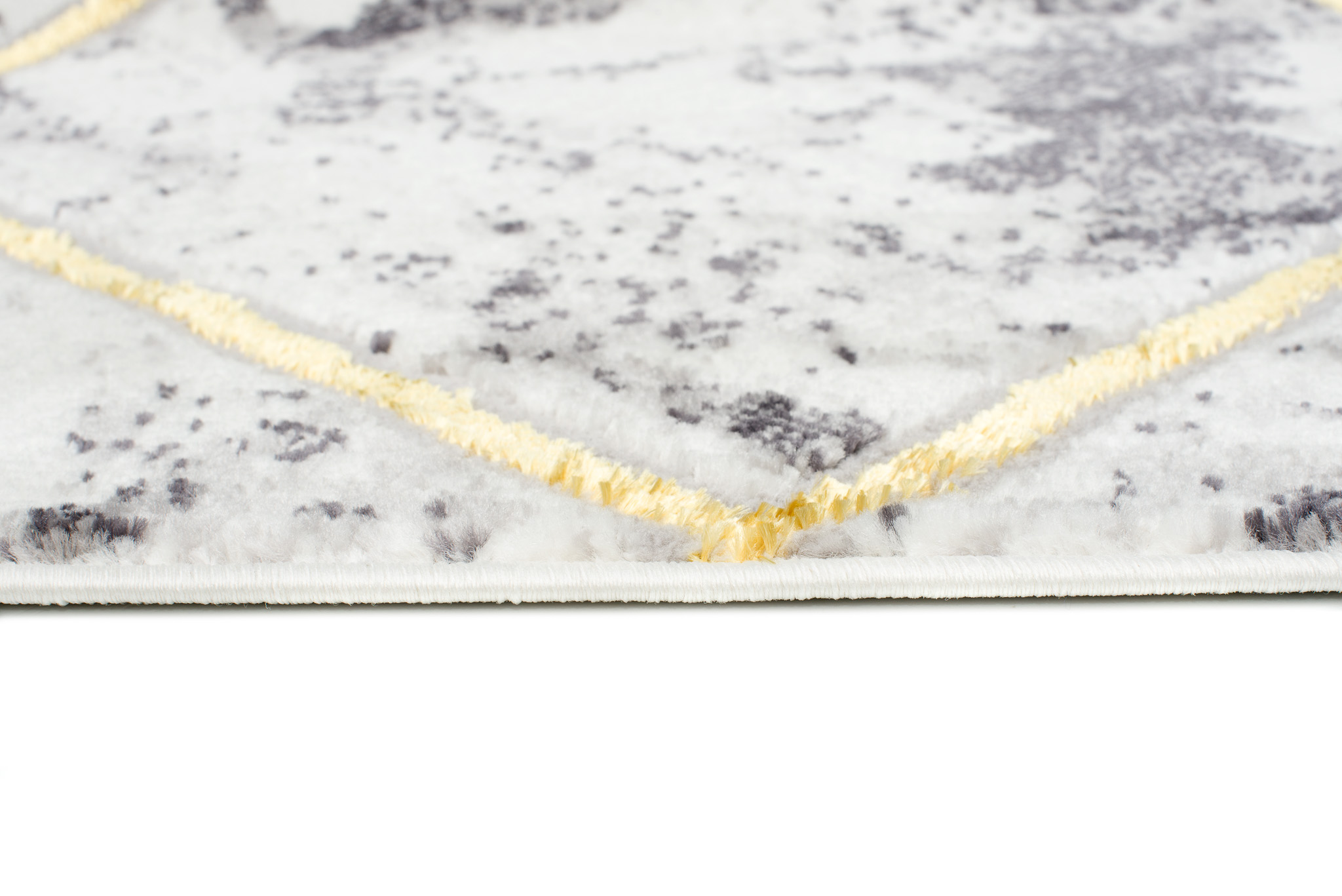 To, co wyróżnia tę kolekcję spośród innych, to abstrakcyjne wzory i subtelna złota nitka, która dodaje dywanom wyjątkowego blasku. Dominujące kolory kolekcji to głęboki szary, elegancki granatowy oraz luksusowy złoty, które harmonijnie łączą się ze sobą, tworząc przyciągający wzrok efekt wizualny.