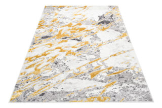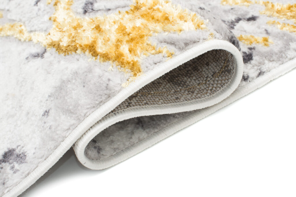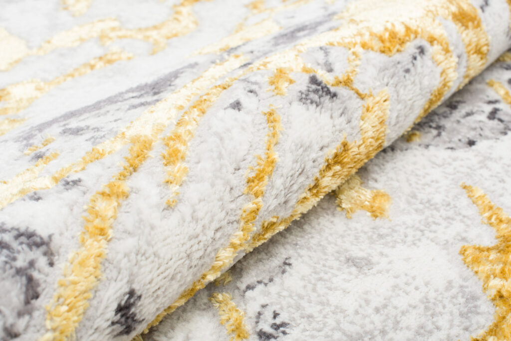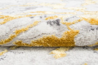 To, co wyróżnia tę kolekcję spośród innych, to abstrakcyjne wzory i subtelna złota nitka, która dodaje dywanom wyjątkowego blasku. Dominujące kolory kolekcji to głęboki szary, elegancki granatowy oraz luksusowy złoty, które harmonijnie łączą się ze sobą, tworząc przyciągający wzrok efekt wizualny.