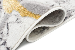 To, co wyróżnia tę kolekcję spośród innych, to abstrakcyjne wzory i subtelna złota nitka, która dodaje dywanom wyjątkowego blasku. Dominujące kolory kolekcji to głęboki szary, elegancki granatowy oraz luksusowy złoty, które harmonijnie łączą się ze sobą, tworząc przyciągający wzrok efekt wizualny.