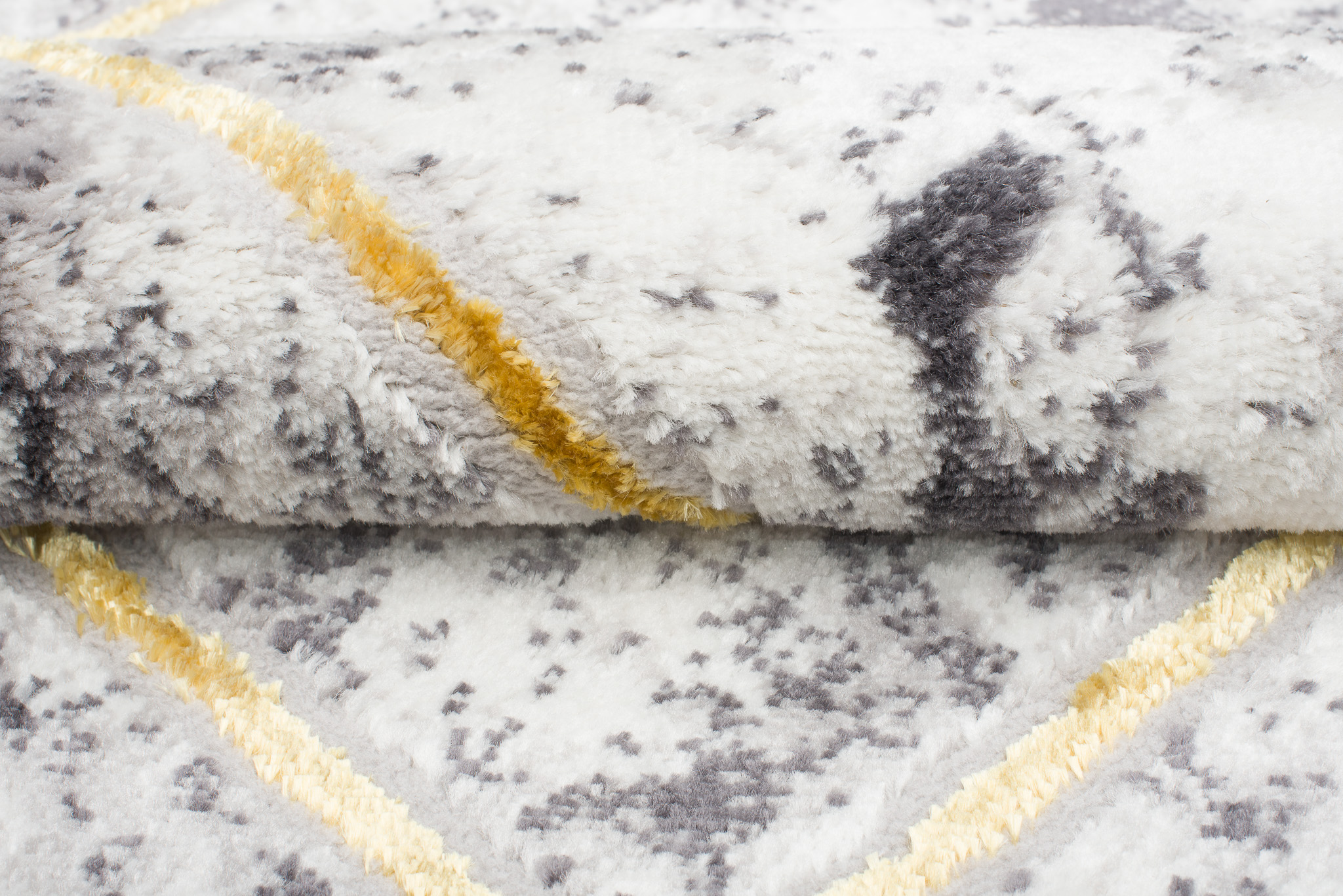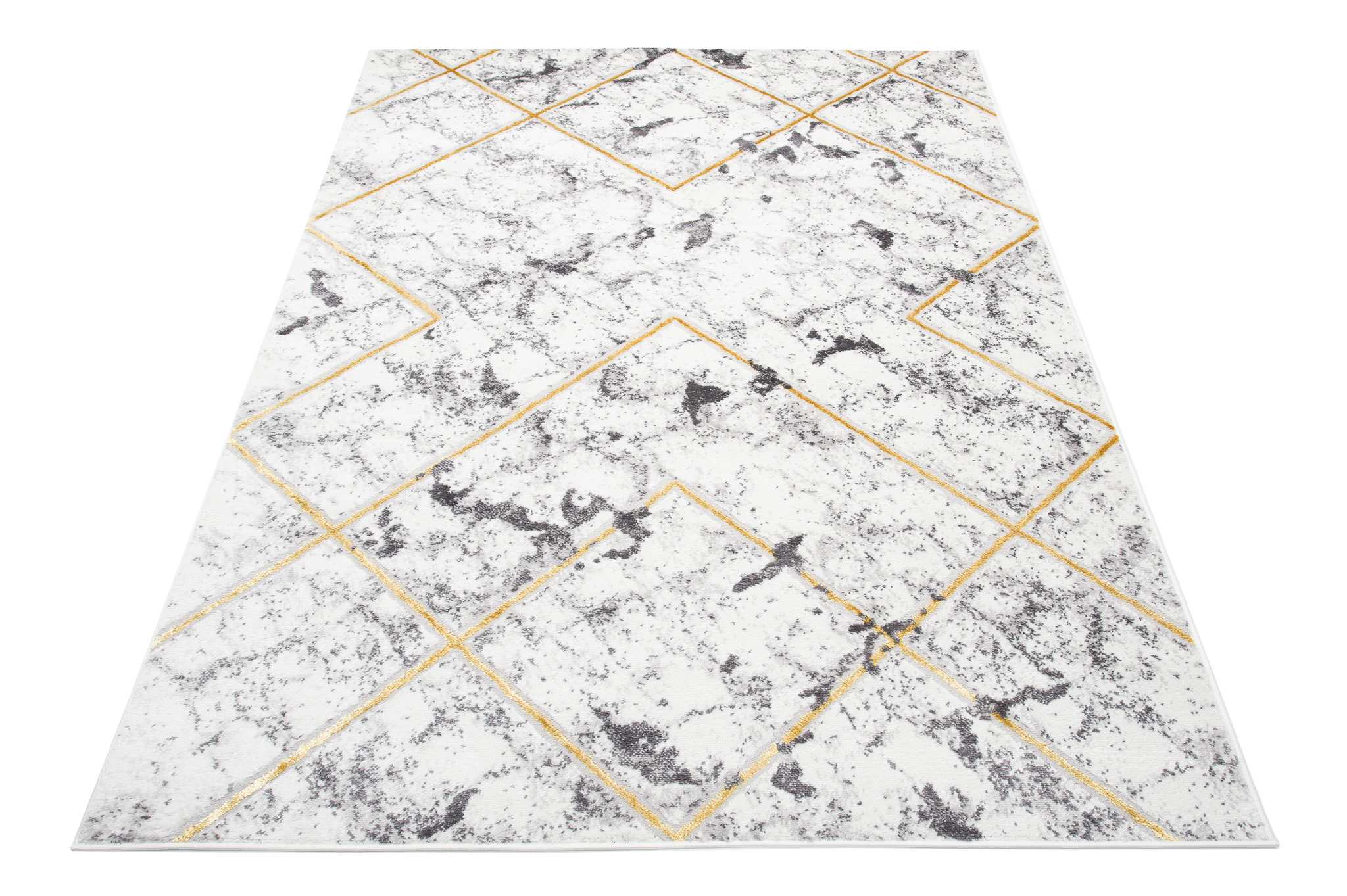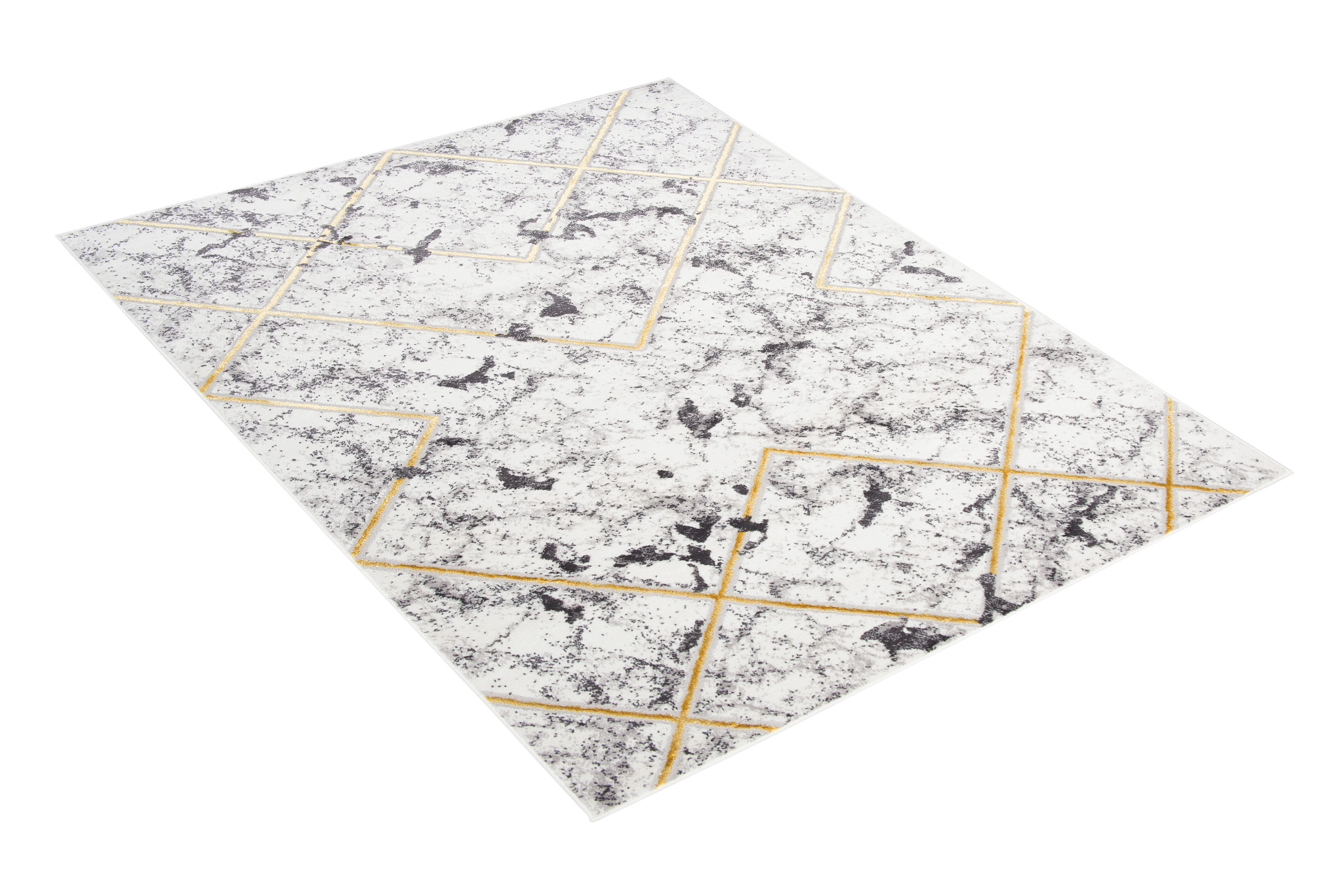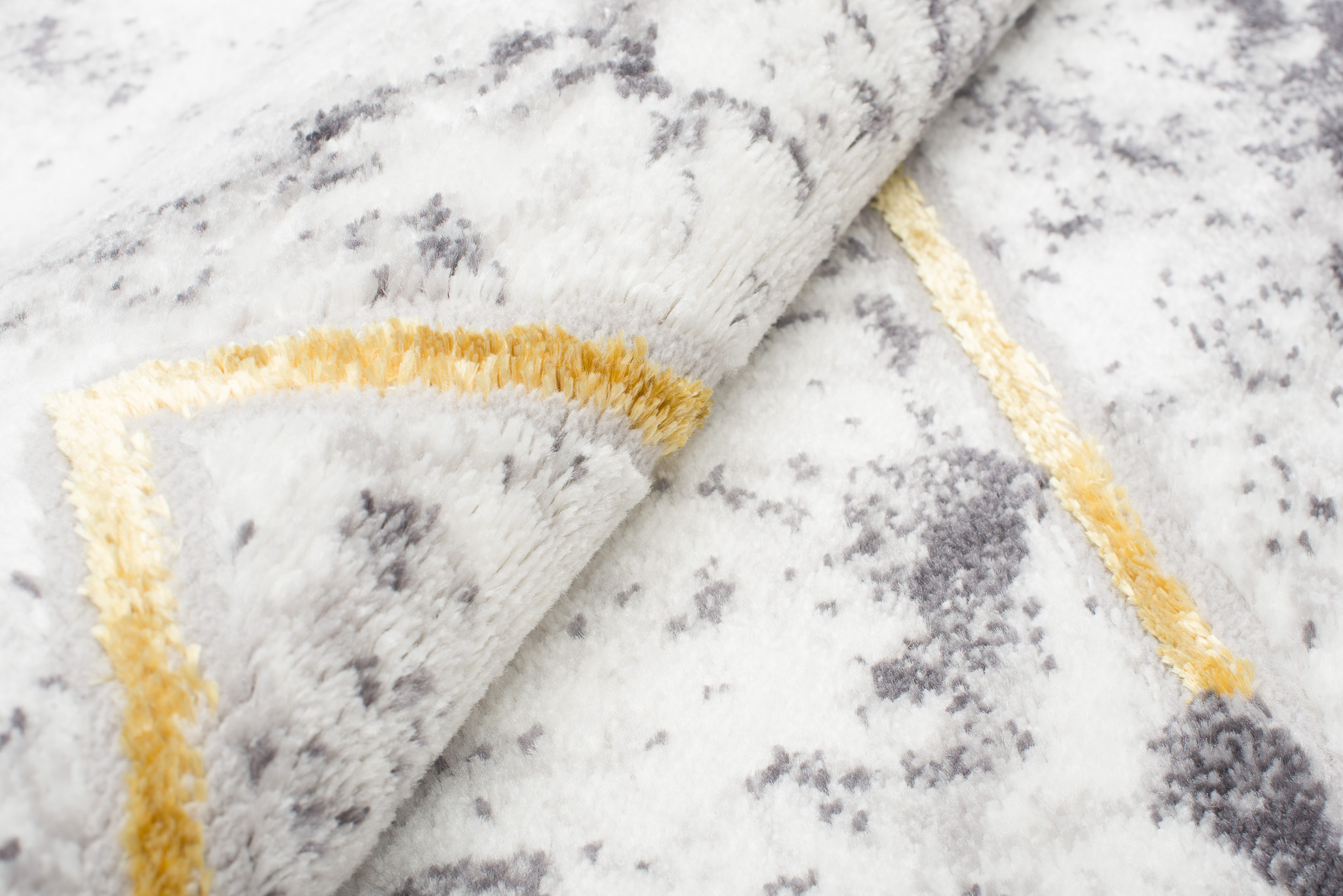To, co wyróżnia tę kolekcję spośród innych, to abstrakcyjne wzory i subtelna złota nitka, która dodaje dywanom wyjątkowego blasku. Dominujące kolory kolekcji to głęboki szary, elegancki granatowy oraz luksusowy złoty, które harmonijnie łączą się ze sobą, tworząc przyciągający wzrok efekt wizualny.