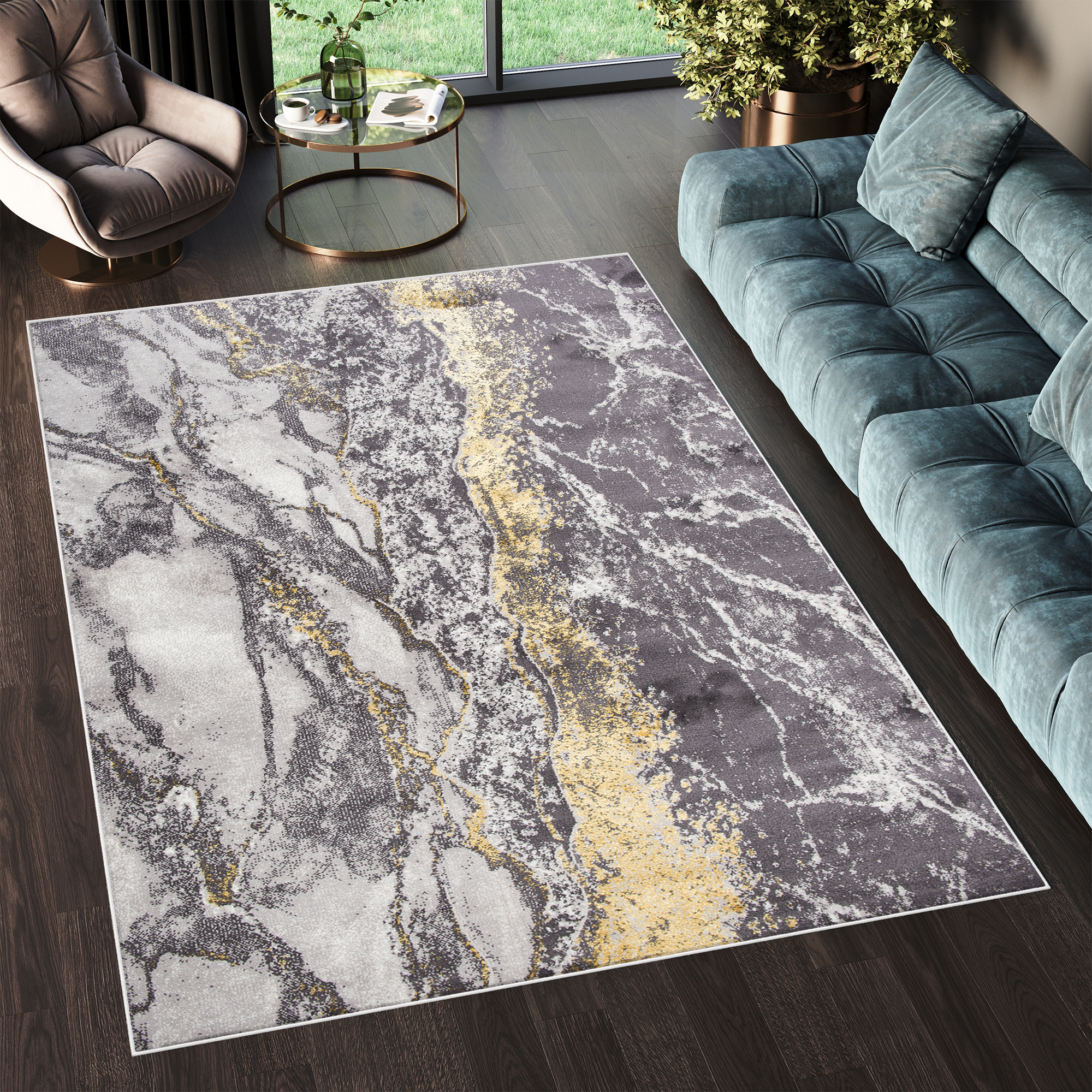 Dywan ShineSzary Złoty Nowoczesny Marmur Efekt 3D