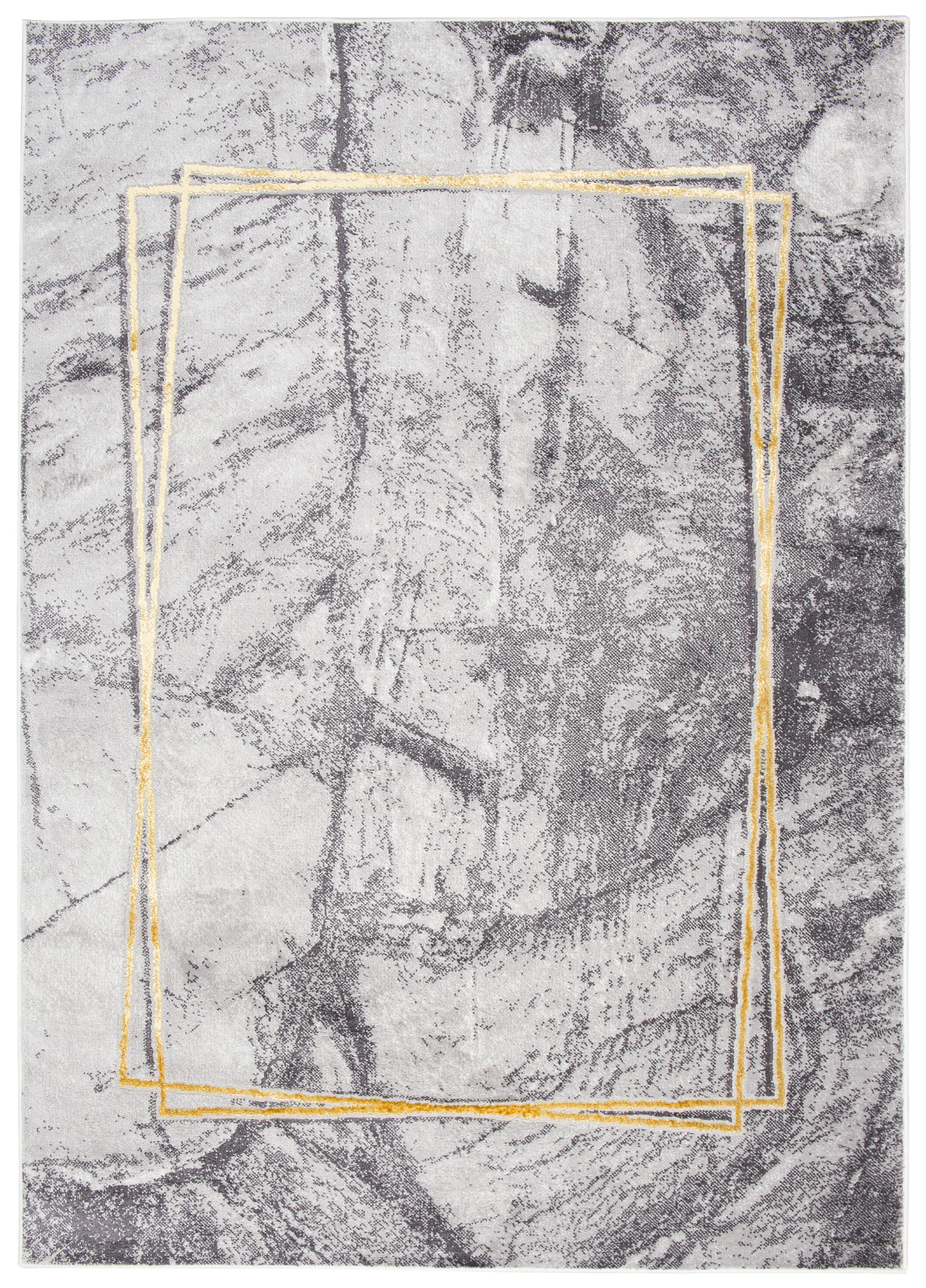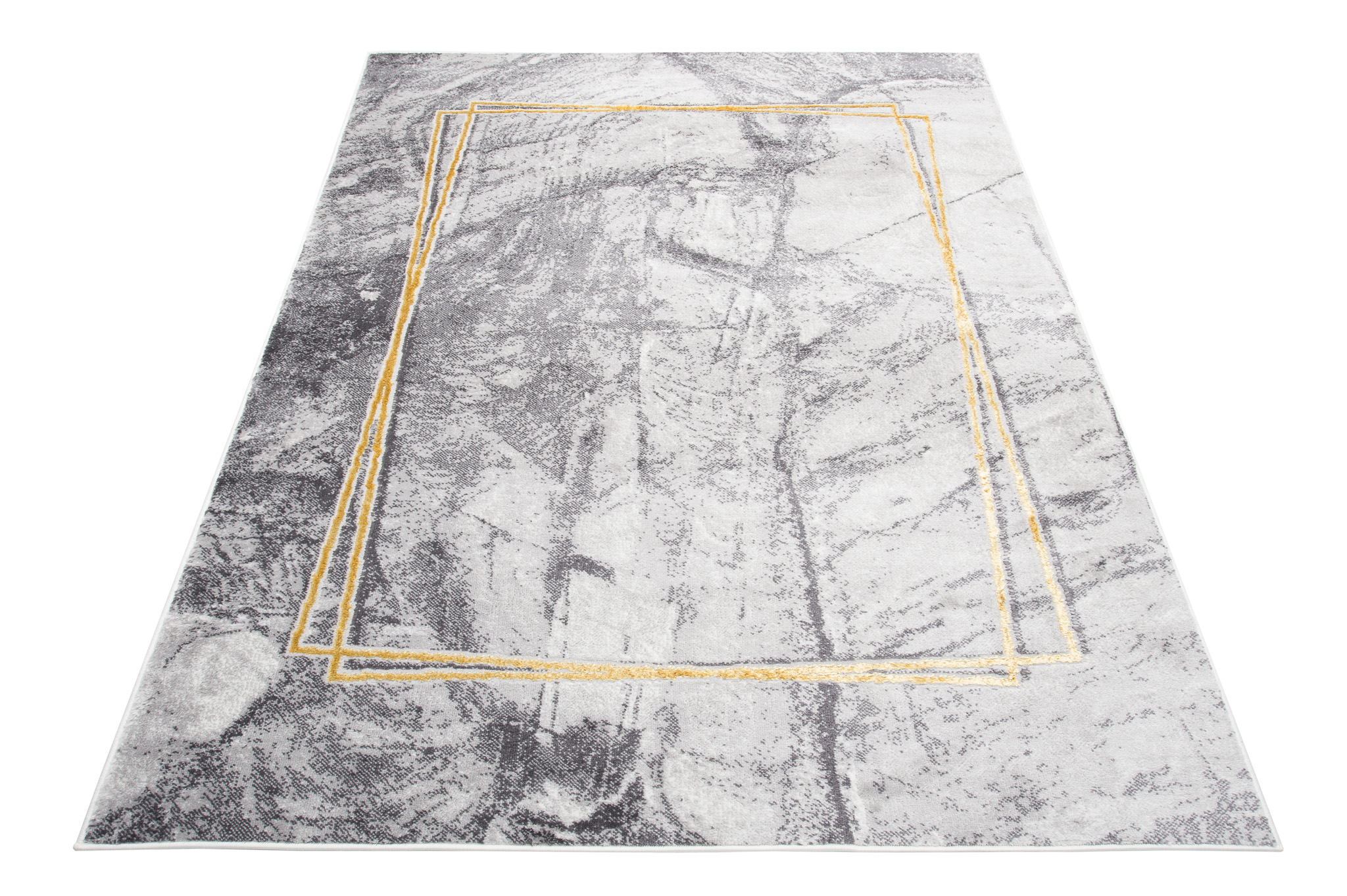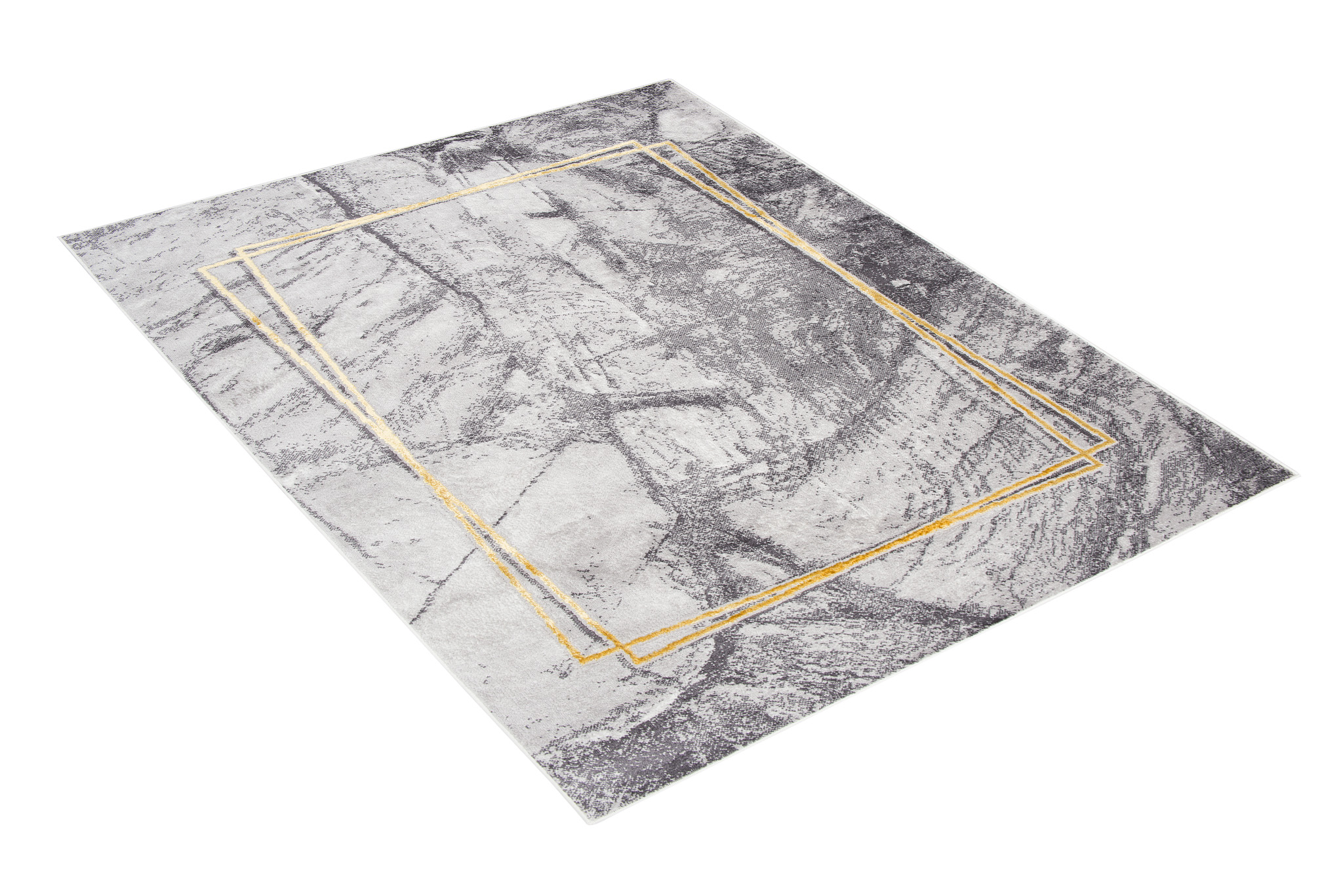 Dywan ShineSzary Złoty Nowoczesny Ramka Efekt 3D