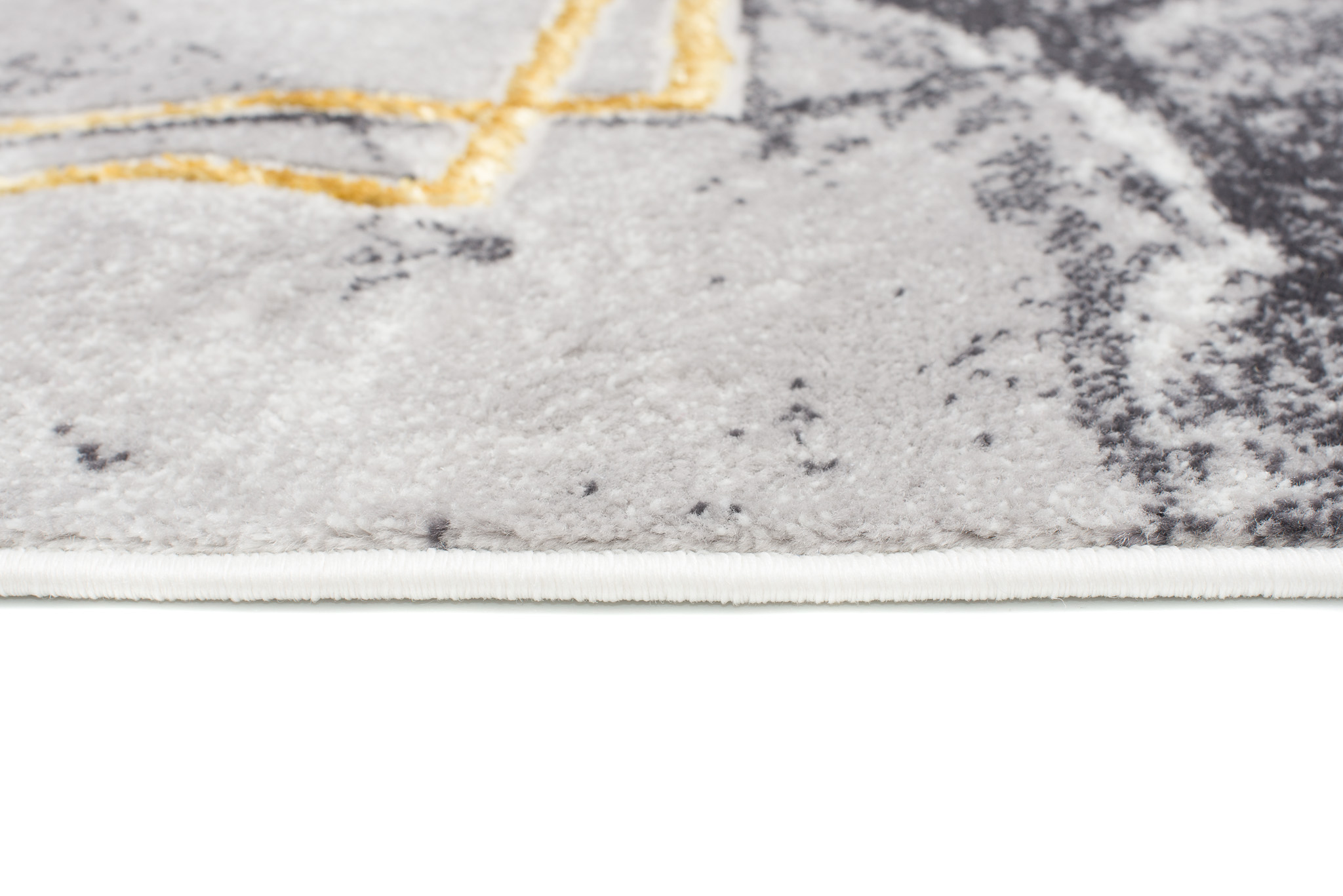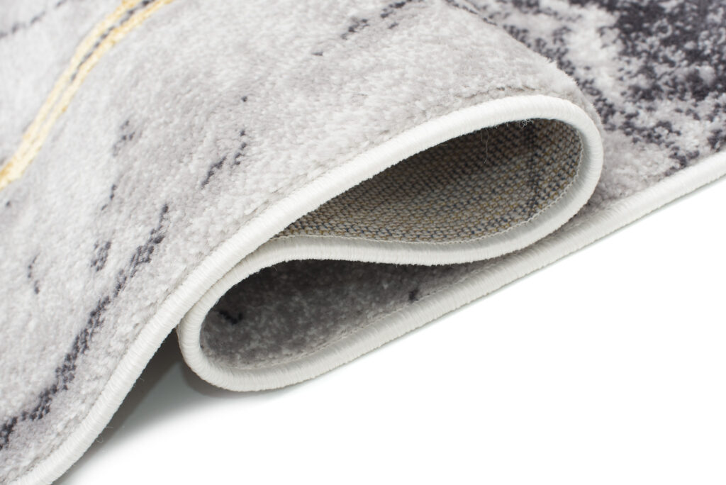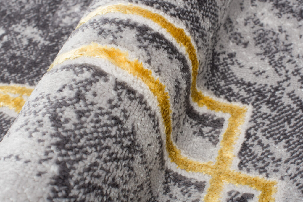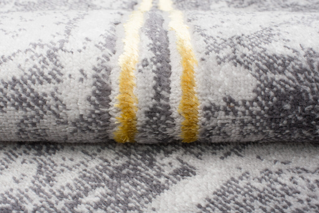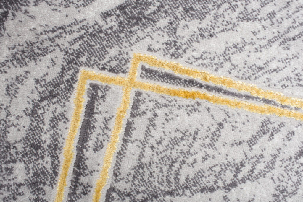 To, co wyróżnia tę kolekcję spośród innych, to abstrakcyjne wzory i subtelna złota nitka, która dodaje dywanom wyjątkowego blasku. Dominujące kolory kolekcji to głęboki szary, elegancki granatowy oraz luksusowy złoty, które harmonijnie łączą się ze sobą, tworząc przyciągający wzrok efekt wizualny.