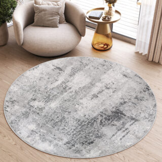 Dywan SkyOkrągły Szary Abstrakcyjny Vintage Przetarcia