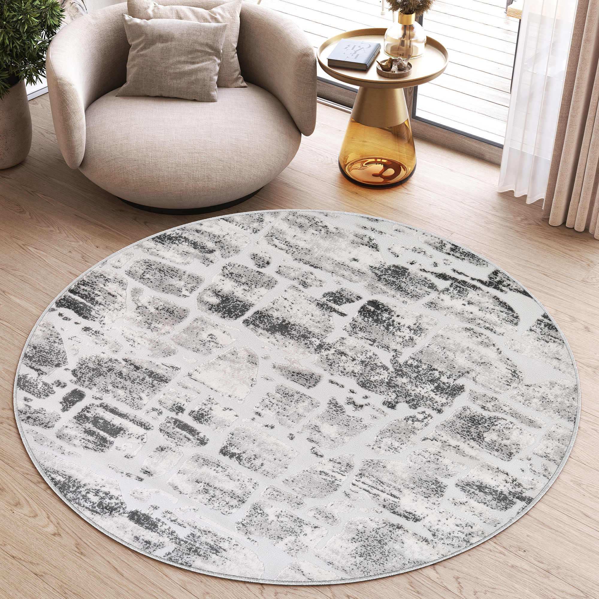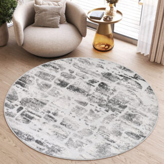 Dywan SkyOkrągły Szary Beżowy Abstrakcyjny Przetarcia
