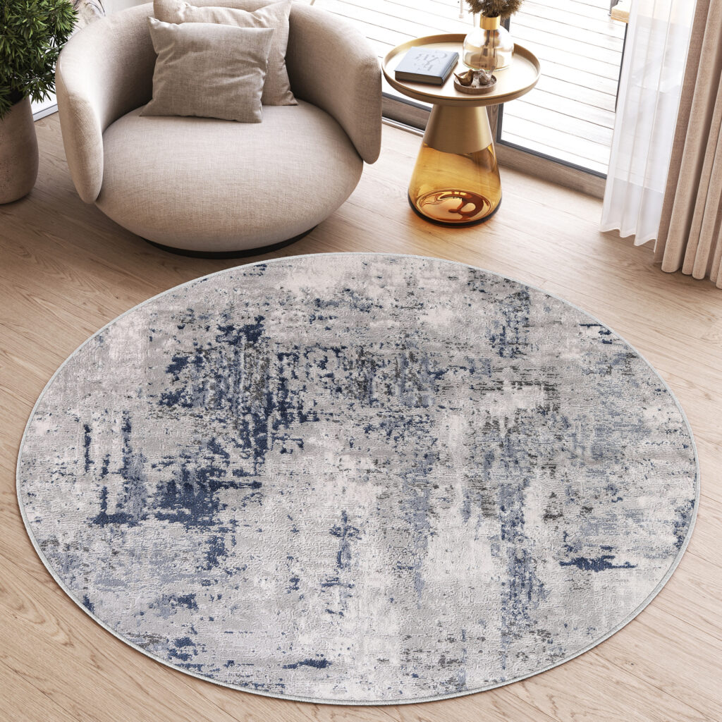 Dywan SkyOkrągły Szary Niebieski Abstrakcyjny Przetarcia