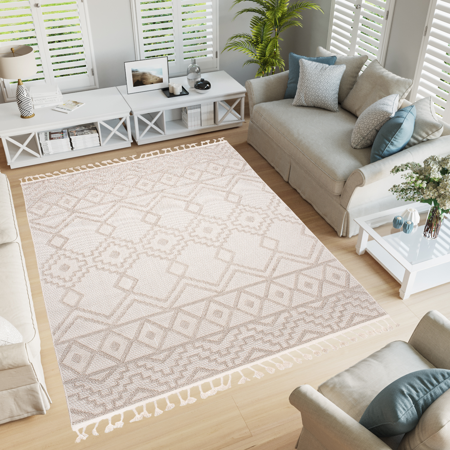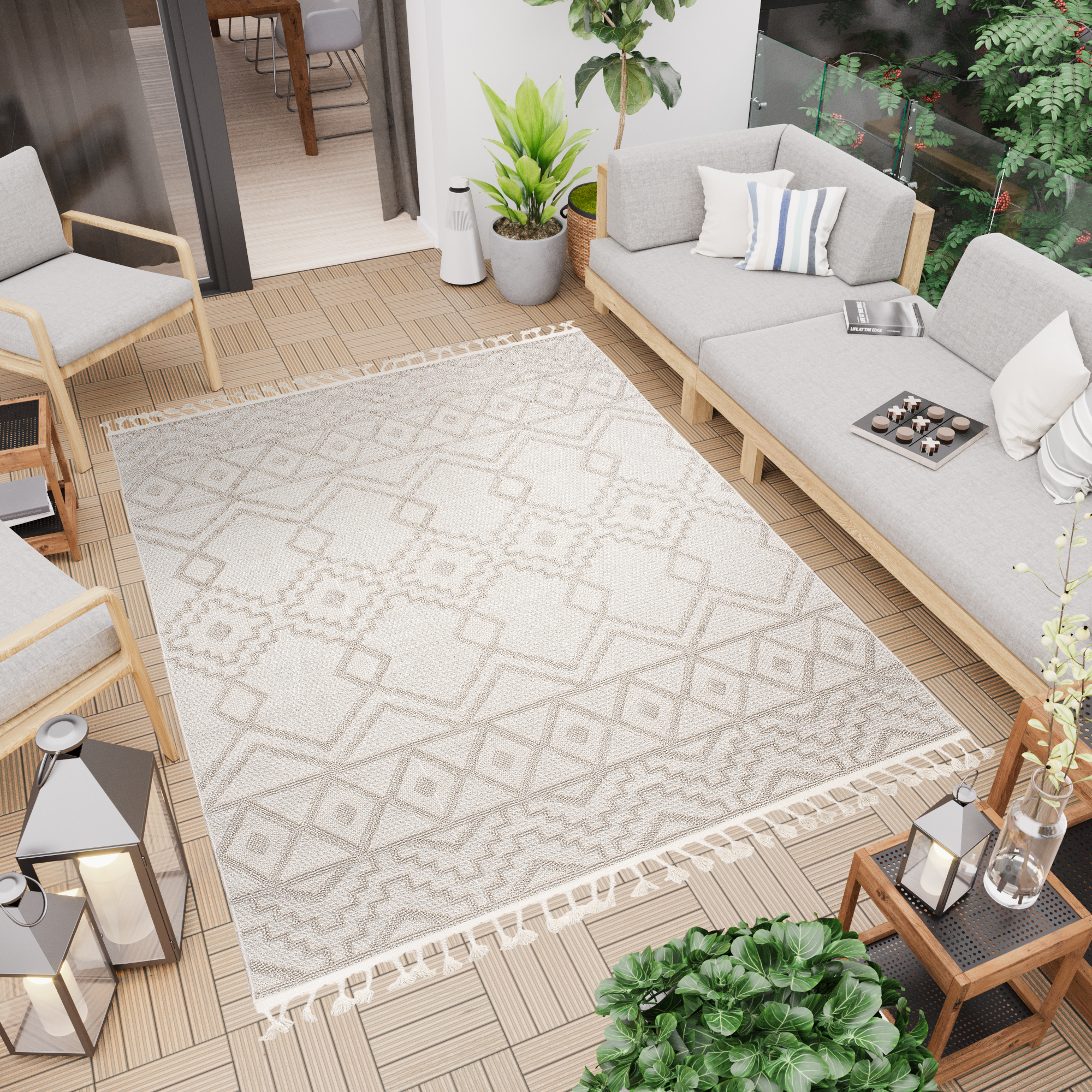 Dywan TimberIndoor Outdoor Beżowy Marokański z Frędzlami