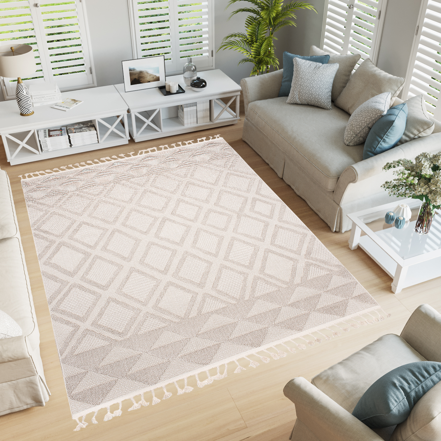 Jedną z wyróżniających się cech tej kolekcji dywanów są jej frędzle, które dodają odrobinę tekstury i charakteru do każdej przestrzeni. Frędzle zapewniają również zabawny element, który jest idealny do stworzenia relaksującej i swobodnej atmosfery w Twoim domu.
