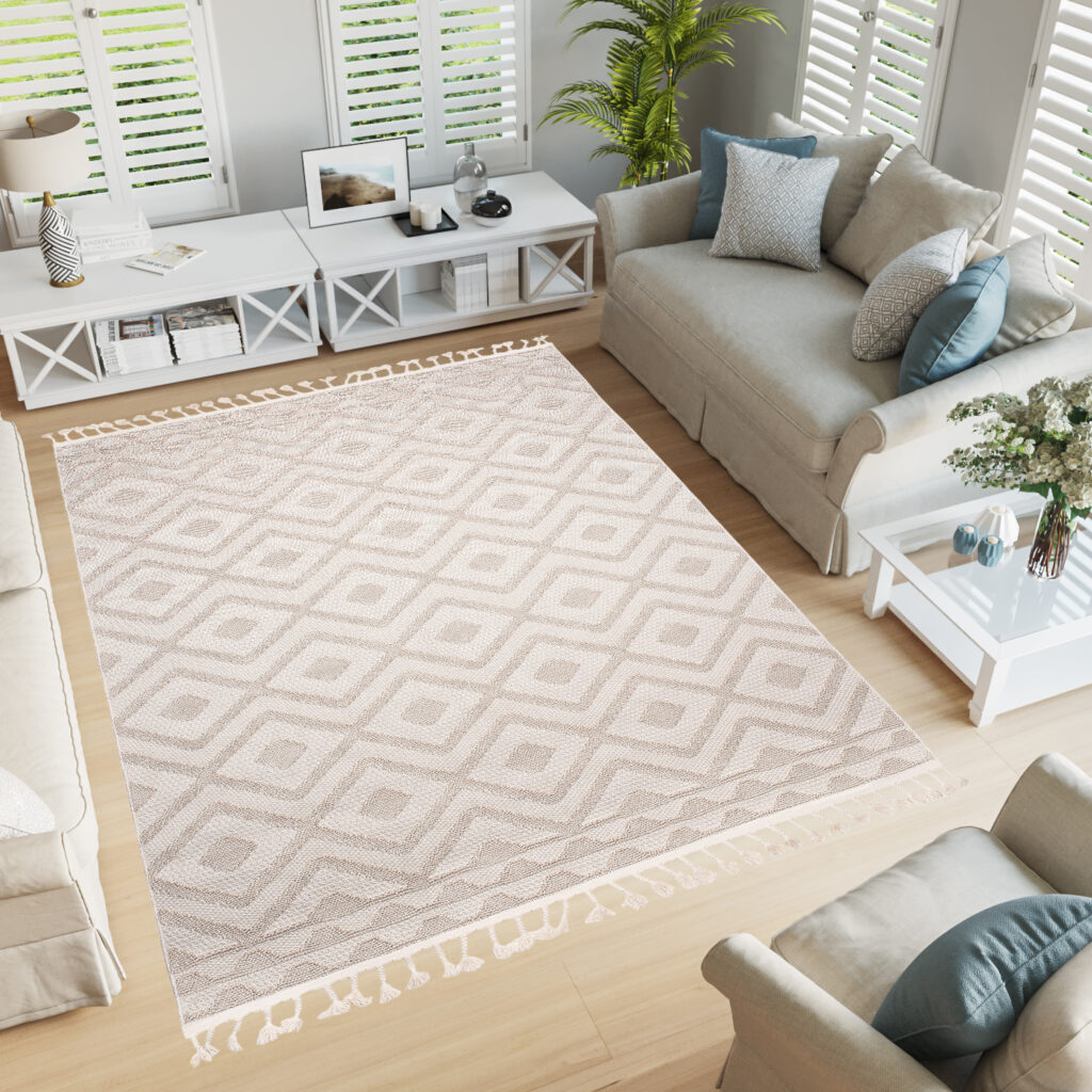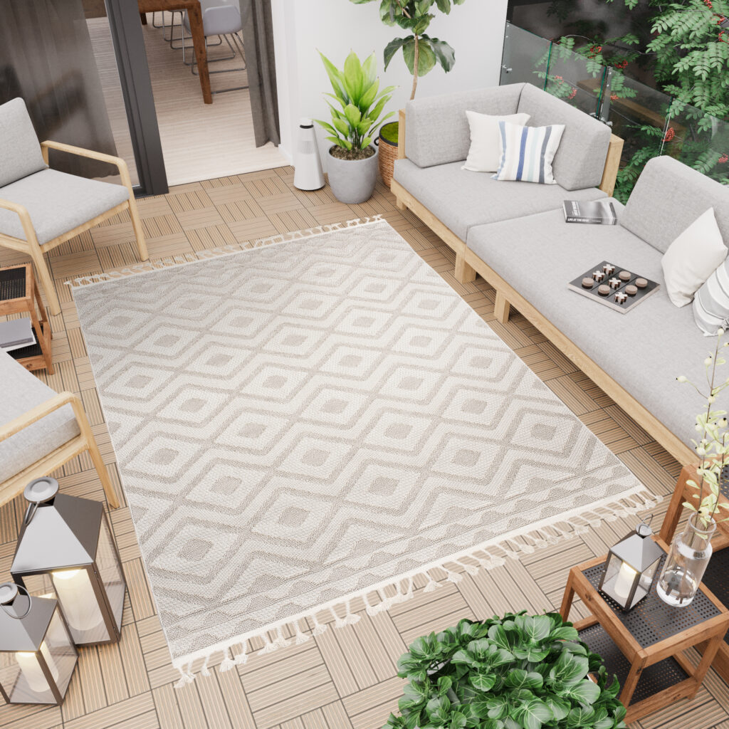 Dywan TimberIndoor Outdoor Beżowy Romby z Frędzlami