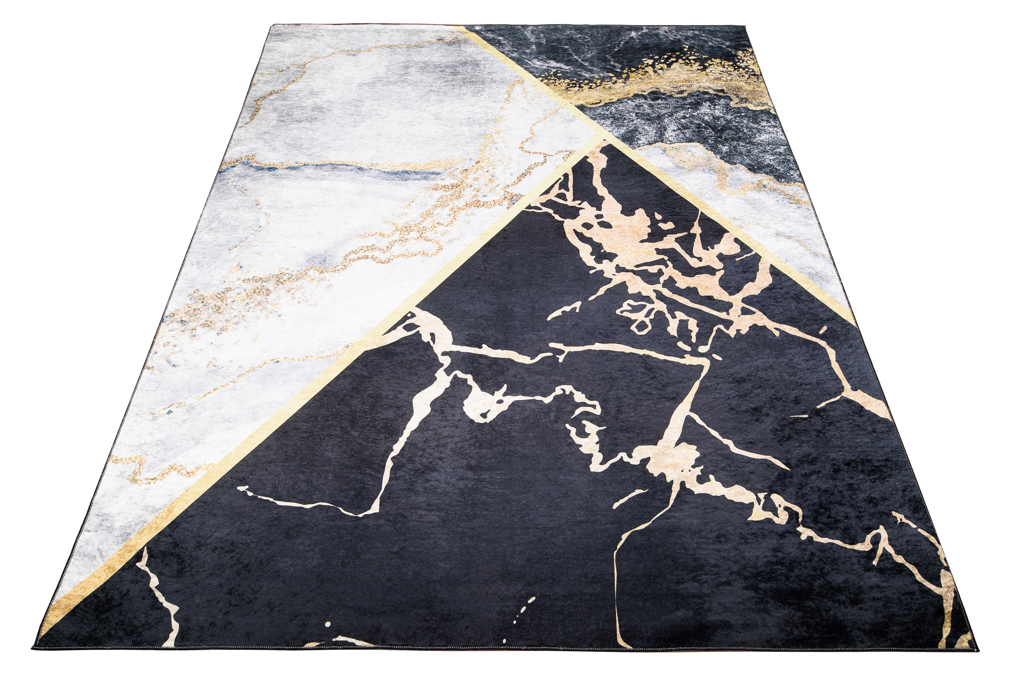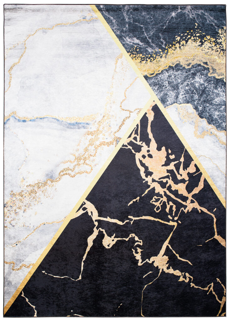Dywan ToscanaCzarno Szaro Złoty Marmur