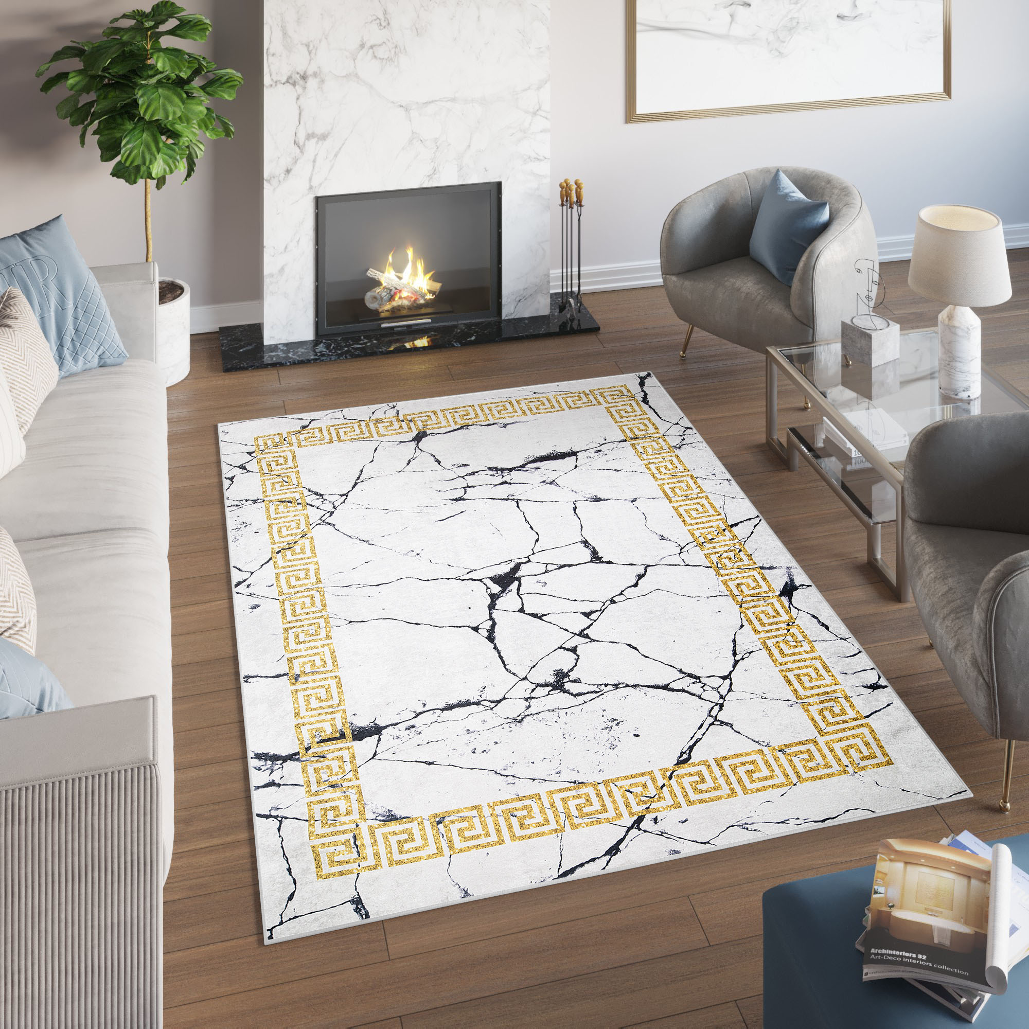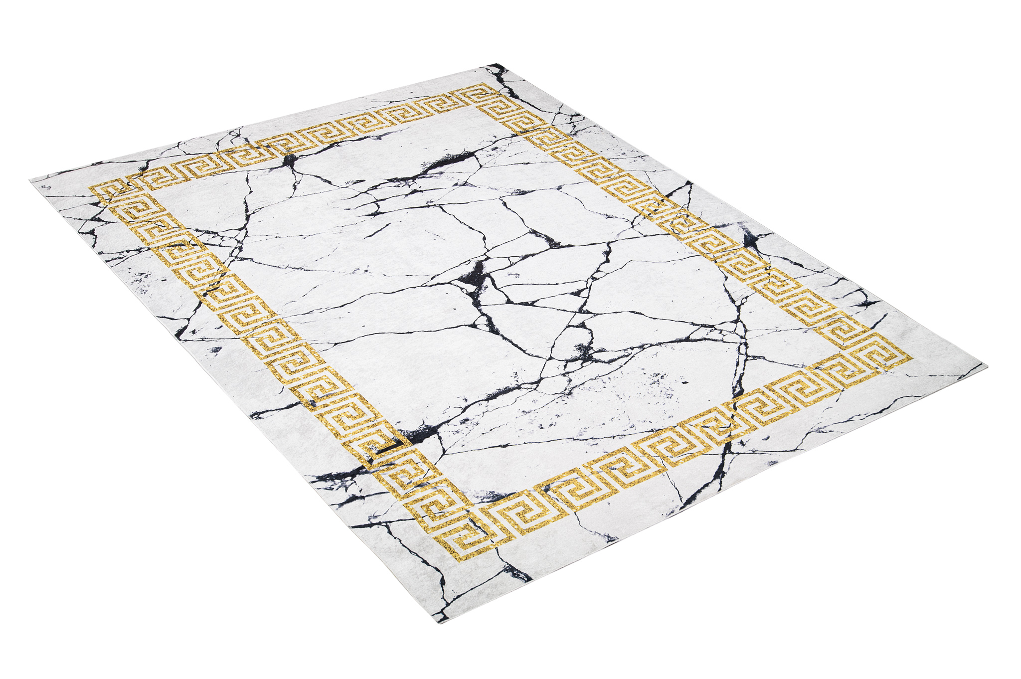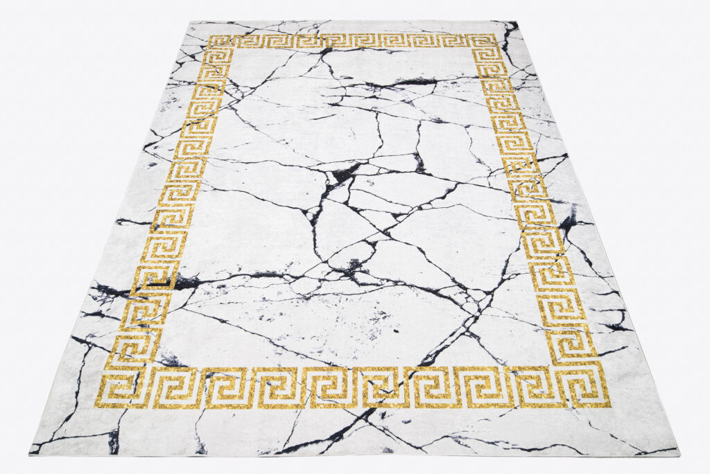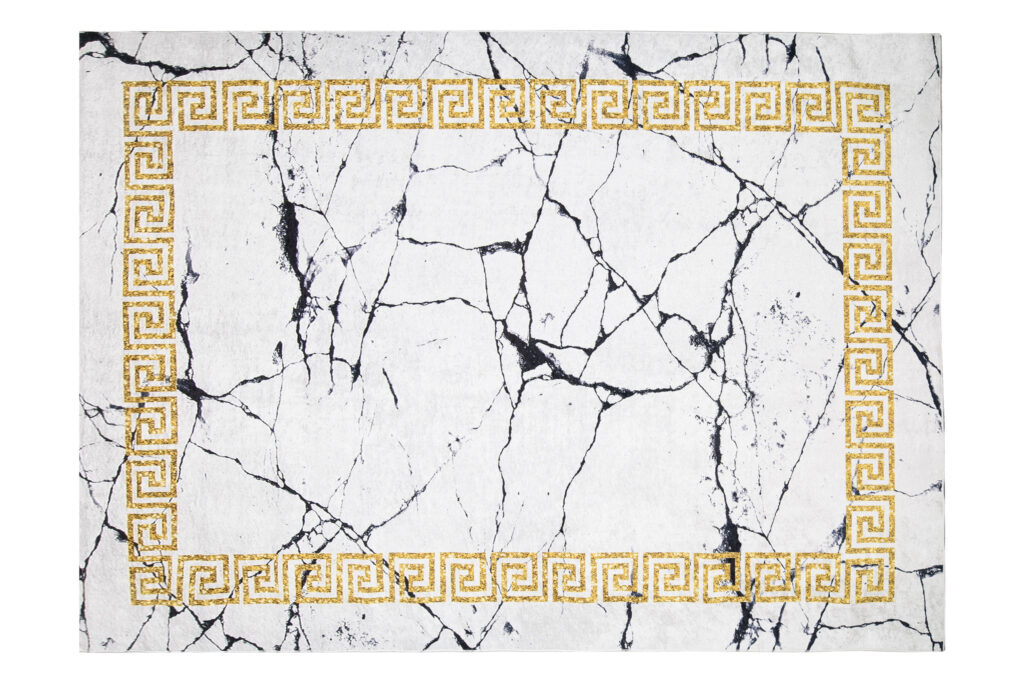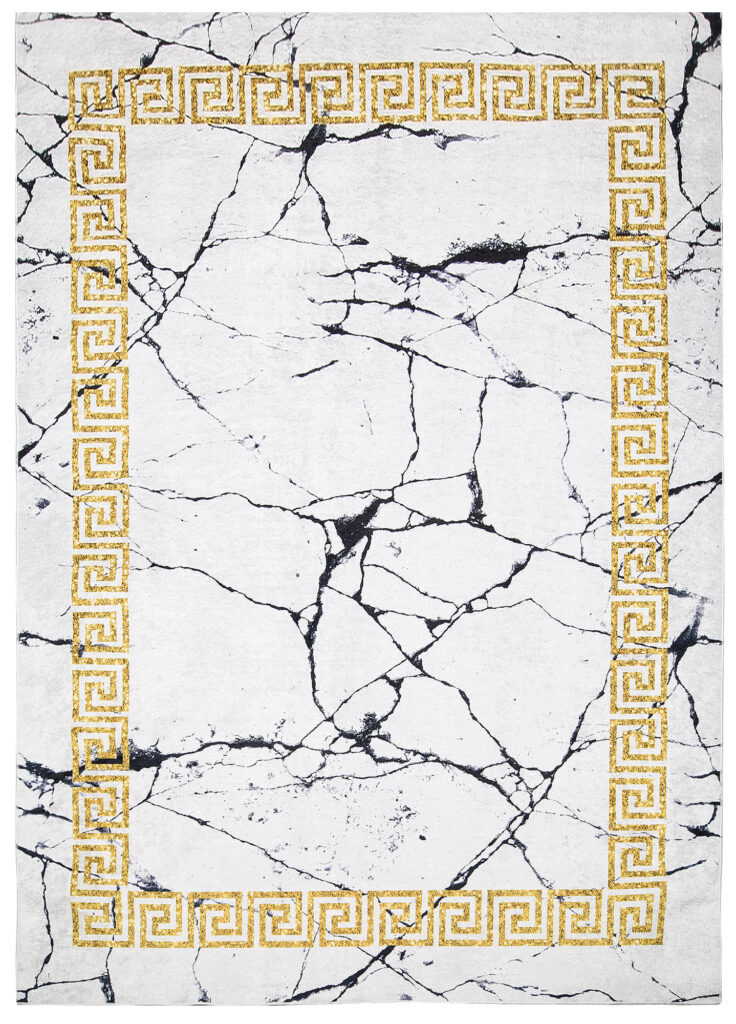 Dywan ToscanaSzary Marmur Złota Ramka Antypoślizgowy