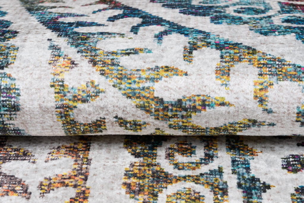 Szukasz stylowego i nowoczesnego dywanu? Kolekcja Toscana wykonana z wytrzymałego włókna poliestrowego to właściwy wybór. Jego głównym przeznaczeniem jest udekorowanie pomieszczenia i dodanie do niego odrobiny koloru. Pojawiają się tu niezwykle modne wzory i kolory – marmur, wzory marokańskie, szalone abstrakcje podobne do obrazów w przykuwających uwagę kolorach takich jak butelkowa zieleń, złoto, szarość czy granat. Wzór jest drukowany na dywaniku i nie posiada on wystającego runa. Dzięki temu dekoracja jest niezwykle łatwa w utrzymaniu – wystarczy wyprać ją w pralce w temperaturze 30°C. Spód dywanu jest antypoślizgowy, dlatego bez najmniejszych probelemów może on leżeć na środku pomieszczenia bez obciążeń.